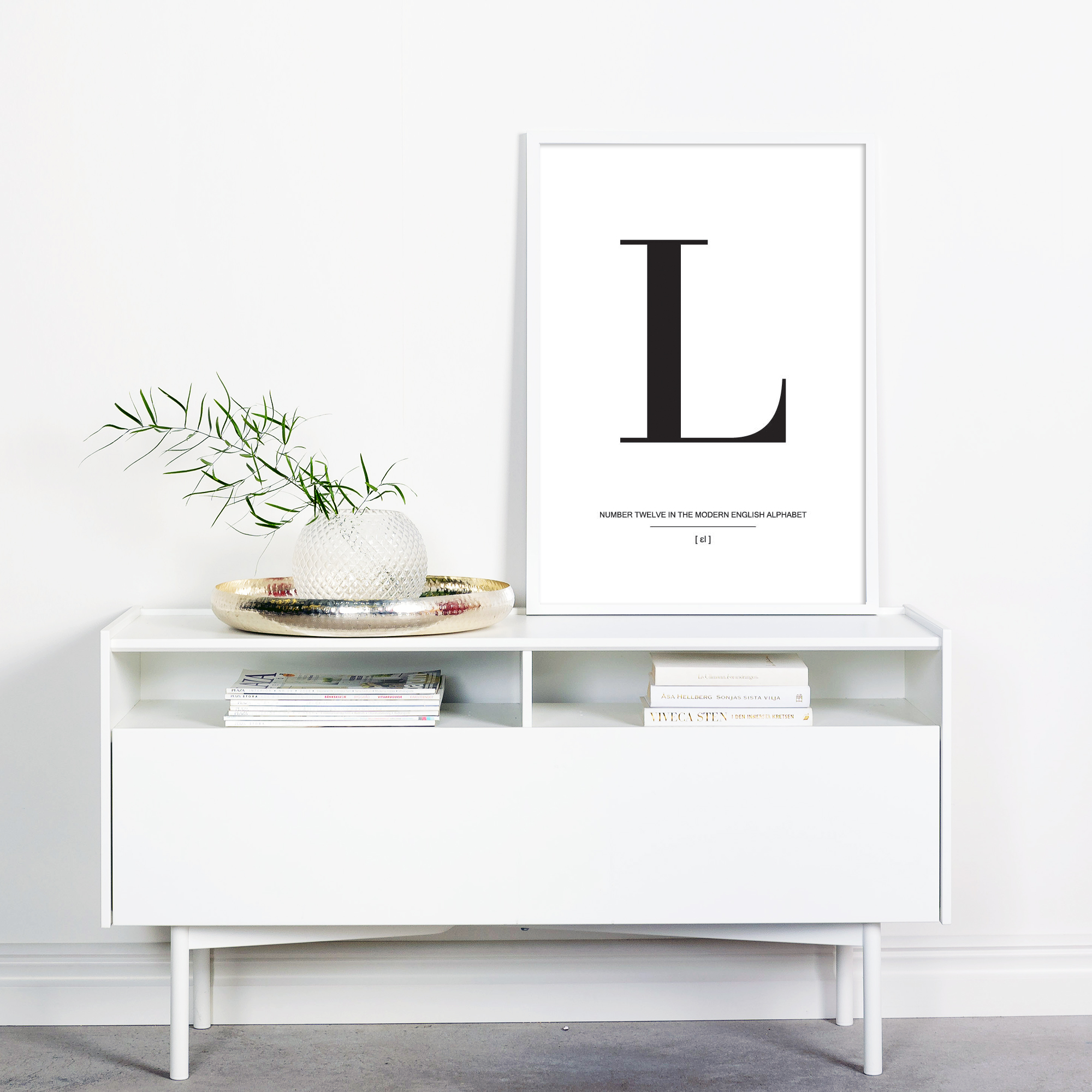 In der Einfachheit liegt das Schöne, und das beweist wirklich dieses stilvolle Plakat mit dem Buchstaben L in Schwarz auf weißem Hintergrund. Das Plakat hat eine schicke Typografie und sollte mit anderen Buchstabenplakaten aus derselben Serie ergänzt werden, um eine trendige und schöne Bilderrahmenwand zu schaffen. Wählen Sie Ihre Lieblingsposter mit Buchstaben aus und wählen Sie aus unserem großen Sortiment an Qualitätsbilderrahmen, dann lassen Sie einfach Ihrer Fantasie freien Lauf zu Hause an den Wänden.