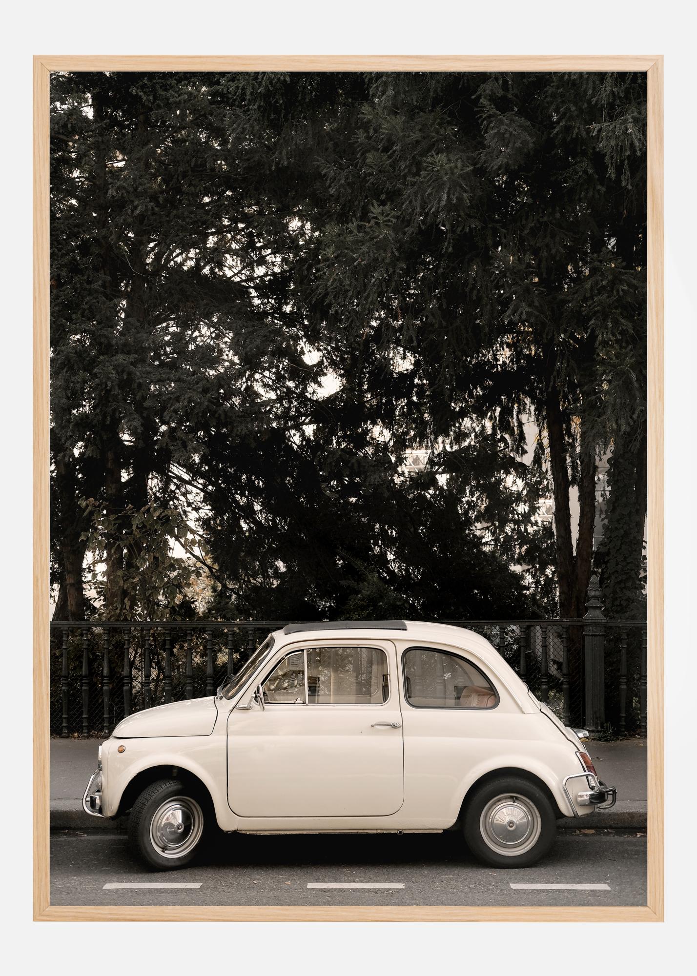 In diesem Poster spiegelt sich eine perfekte Balance zwischen der reinen weißen Fläche des Fahrzeugs und den dunkleren Grüntönen der Bäume im Hintergrund wider, die zusammen ein ruhiges und harmonisches Bild schaffen. Der sepiafarbene Himmel und die subtile Stadtlandschaft verleihen eine zusätzliche Dimension von Wärme und Tiefe. Dieses Poster wird jedem Raum einen Hauch von Raffinesse verleihen und ist ein ideales Geschenk für Autoenthusiasten oder diejenigen, die die klassische Ästhetik in ihrer Einrichtung schätzen.
