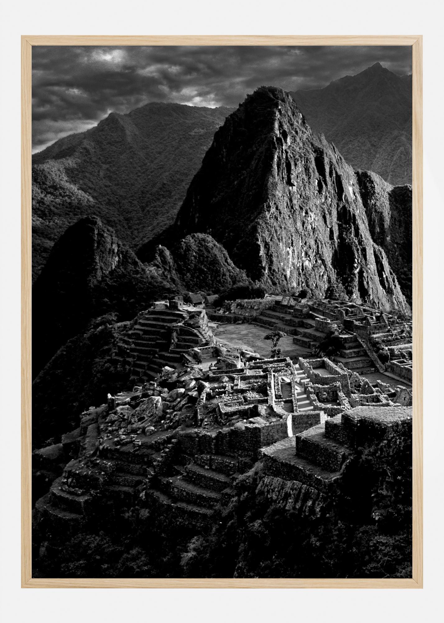 Ein faszinierender Schwarz-Weiß-Druck von der verlorenen Stadt der Inkas. Der spektakuläre Blick auf die Ruinen entführt Sie in eine andere Zeit. Die schwarz-weiße Silouette unterstreicht das natürliche Licht, das auf die Mitte des Bildes scheint. Hängen Sie diesen magischen und geheimnisvollen Druck in Ihrem Studio auf und machen Sie einen Schritt zurück in die Vergangenheit.
