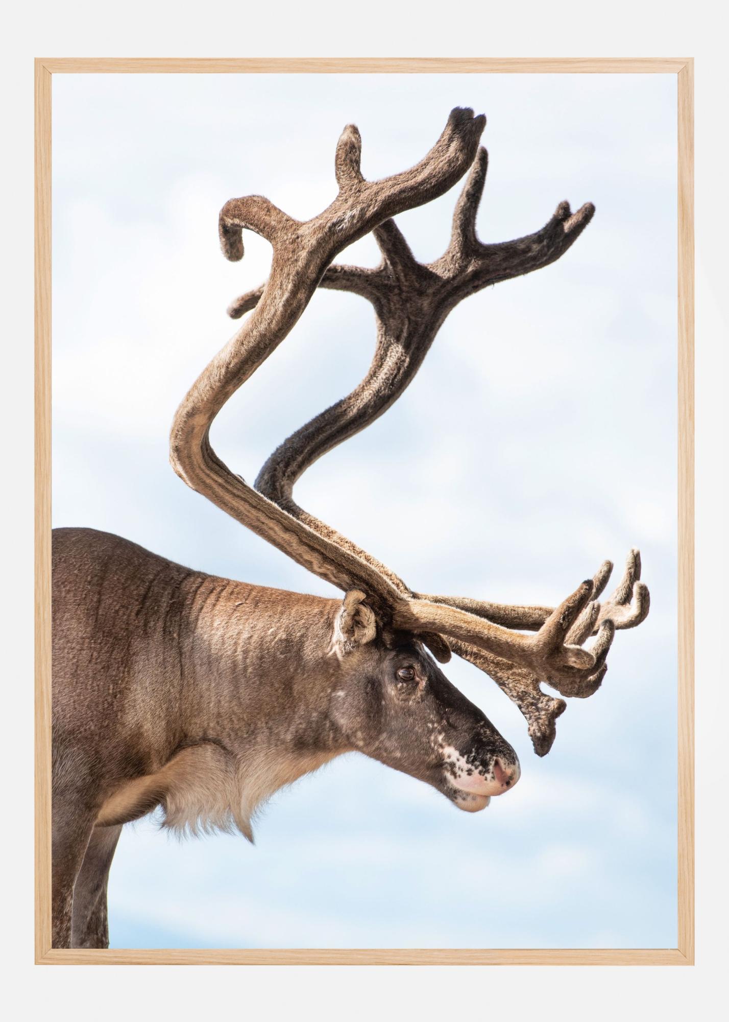 Dieses Motiv zeigt ein stattliches Rentier im Profil mit beeindruckenden, verzweigten Geweihstangen vor einem sanften, hellen Himmel. Das Bild strahlt einen naturinspirierten, nordischen Charakter aus und eignet sich perfekt als Poster oder Kunstdruck im Wohnzimmer, Schlafzimmer oder in der Berghütte. Das detailreiche Foto vermittelt ein Gefühl von Wildnis, Ruhe und Stärke – eine ideale Wahl für dich, wenn du Tiermotive, skandinavisches Design und trendige Naturprints liebst.