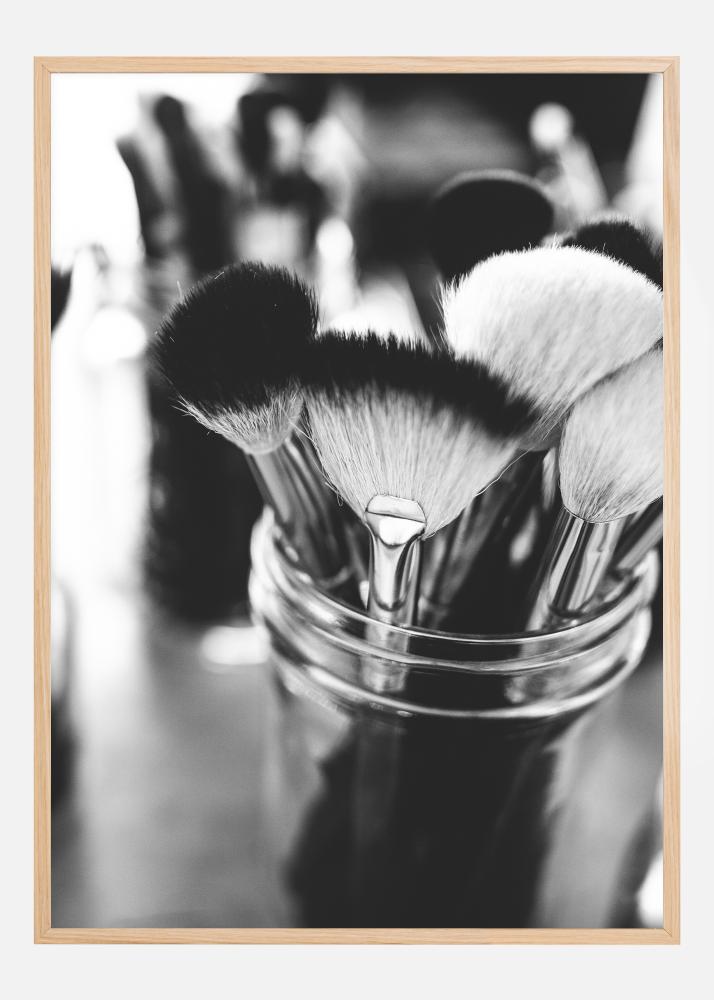 Ein künstlerischer und zugleich lustiger Druck eines Glasgefäßes voller Schminkpinsel. Dieses auffällige Schwarz-Weiß-Bild zeigt eine Vielzahl von Pinselgrößen. Spüren Sie die Sanftheit dieser Pinsel, wenn Sie dieses Bild an Ihre Schlafzimmerwand hängen.