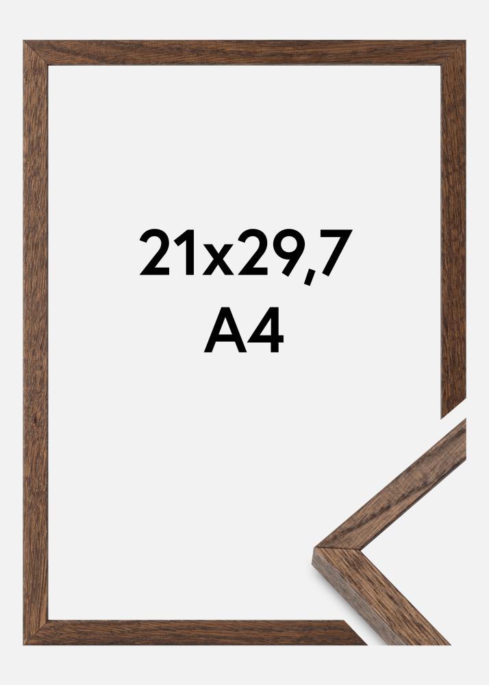 Dieser elegante Bilderrahmen in Dunkler Eiche ist perfekt, um Ihre Lieblingsmotive in der Größe 21x29,7 cm (A4) hervorzuheben. Mit einer Rahmenleiste, die 13,5 mm breit und 22,5 mm tief misst, bietet er eine stabile und stilvolle Umrahmung. Hergestellt aus Kiefer, vermittelt dieser Fotorahmen ein natürliches und warmes Gefühl mit seiner dunkelbraunen Holzstruktur.