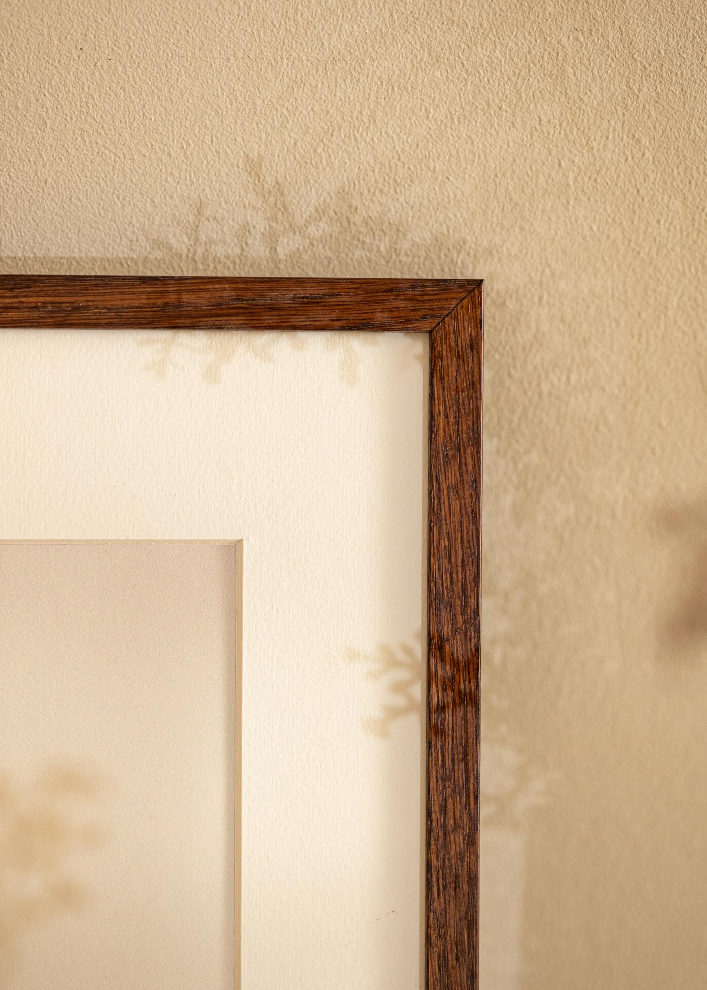 Dieser elegante Bilderrahmen in Dunkler Eiche ist perfekt, um Ihre Lieblingsmotive hervorzuheben. Mit einer Größe von 42x59,4 cm (A2) eignet er sich hervorragend für größere Bilder und Plakate. Die warme, dunkelbraune Holzstruktur mit deutlicher Maserung verleiht ein authentisches Holzgefühl und fügt sowohl modernen als auch ländlichen Einrichtungsstilen einen rustikalen Charme hinzu.