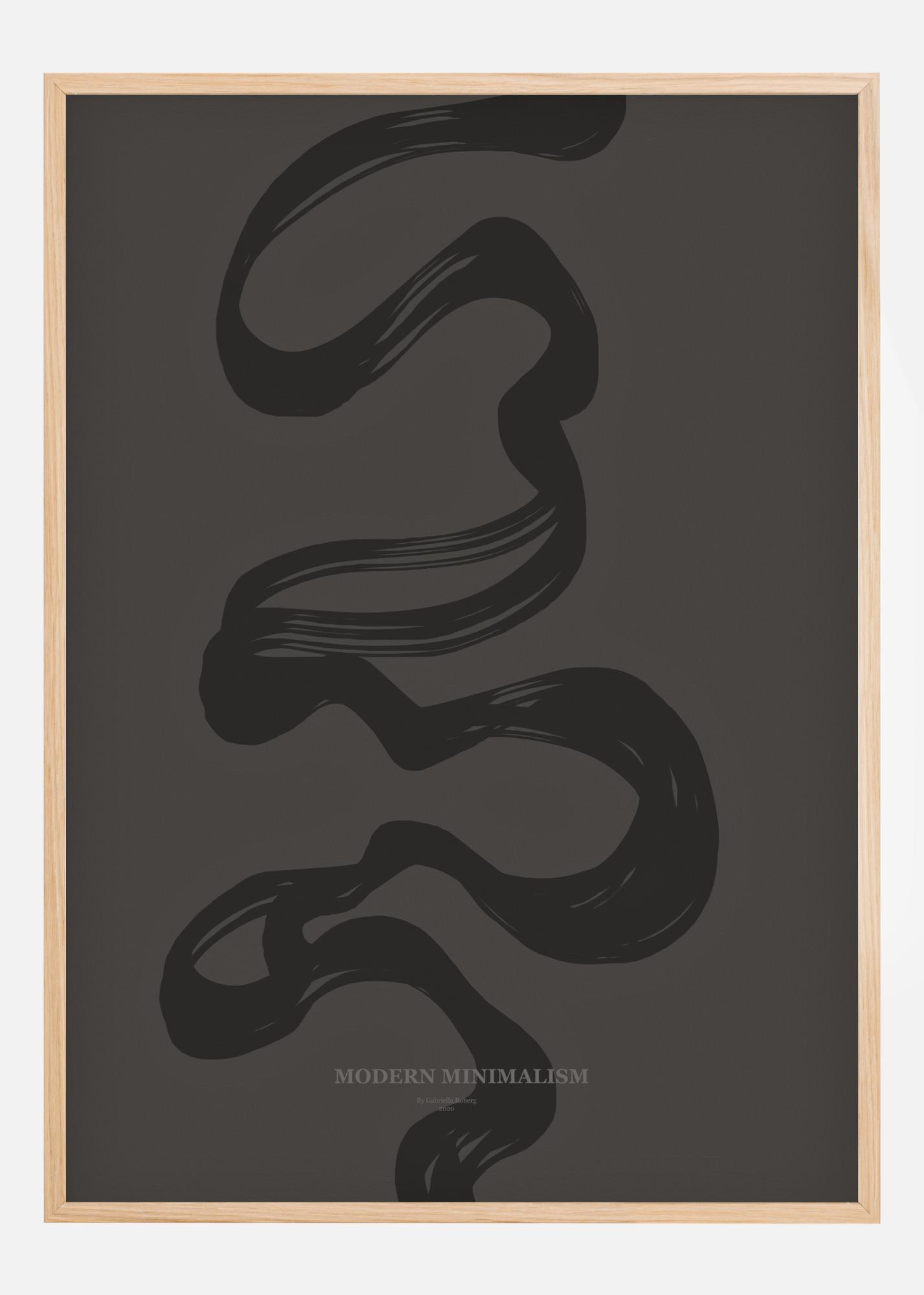 Eine Zeichnung einer anschwellenden grauen Linie von oben nach unten auf der mattbraunen Leinwand, die ein Gefühl von Freiheit und Bewegung vermittelt. Mit dem Schriftzug "Modern Minimalism" am unteren Rand ist das schlangenartige Muster eine Wonne. Aufregend und perfekt für jede Wohnzimmerwand.