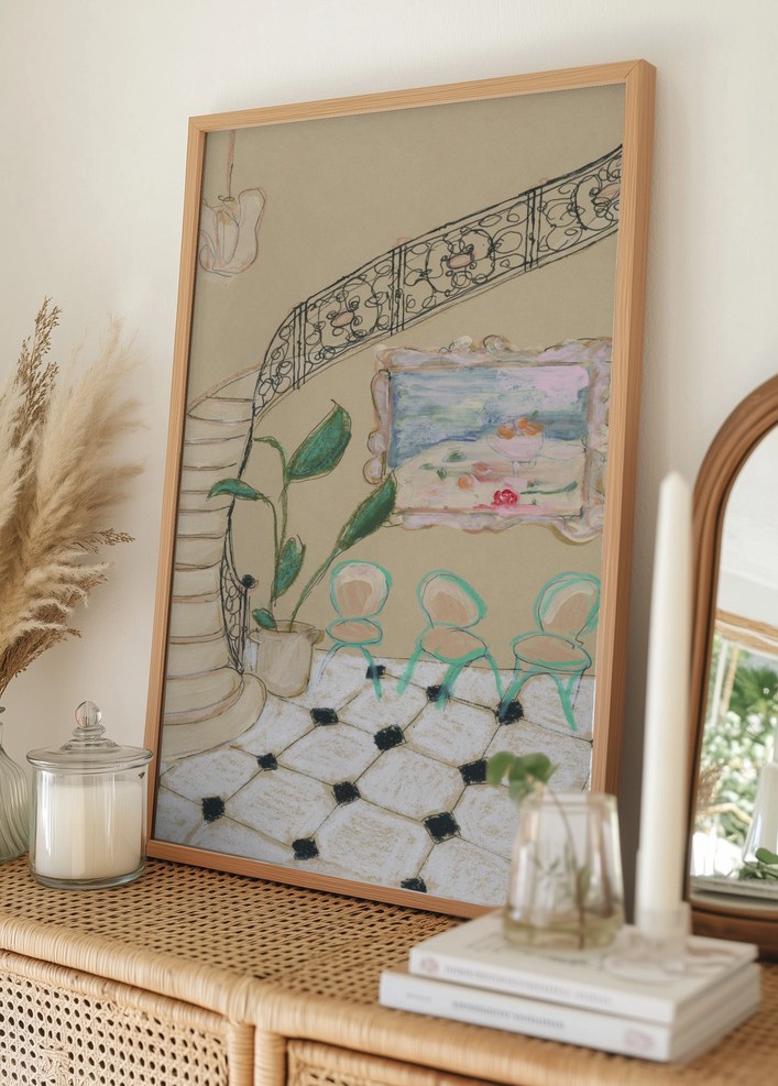 Trendy Poster, das wunderbar mit anderen Bildern kombiniert werden kann, z.B. für eine tolle Bilderwand. Und warum nicht mit einem passendem Bilderrahmen komplettieren Rahmen oder Posteraufhänger.