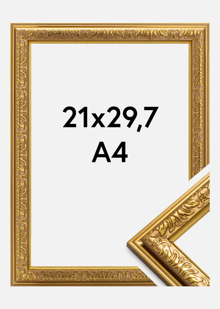 "Nostalgia" ist ein eleganter Goldrahmen im Retrostil mit schönen Verzierungen. Passt gut, wenn Sie einen breiten Retrorahmen für Ihre allerschönsten Bilder suchen. Der passende Rahmen für Bilder im DIN A4-Format verleiht Ihrem Bild eine stilvolle Umrahmung und setzt es gekonnt in Szene.