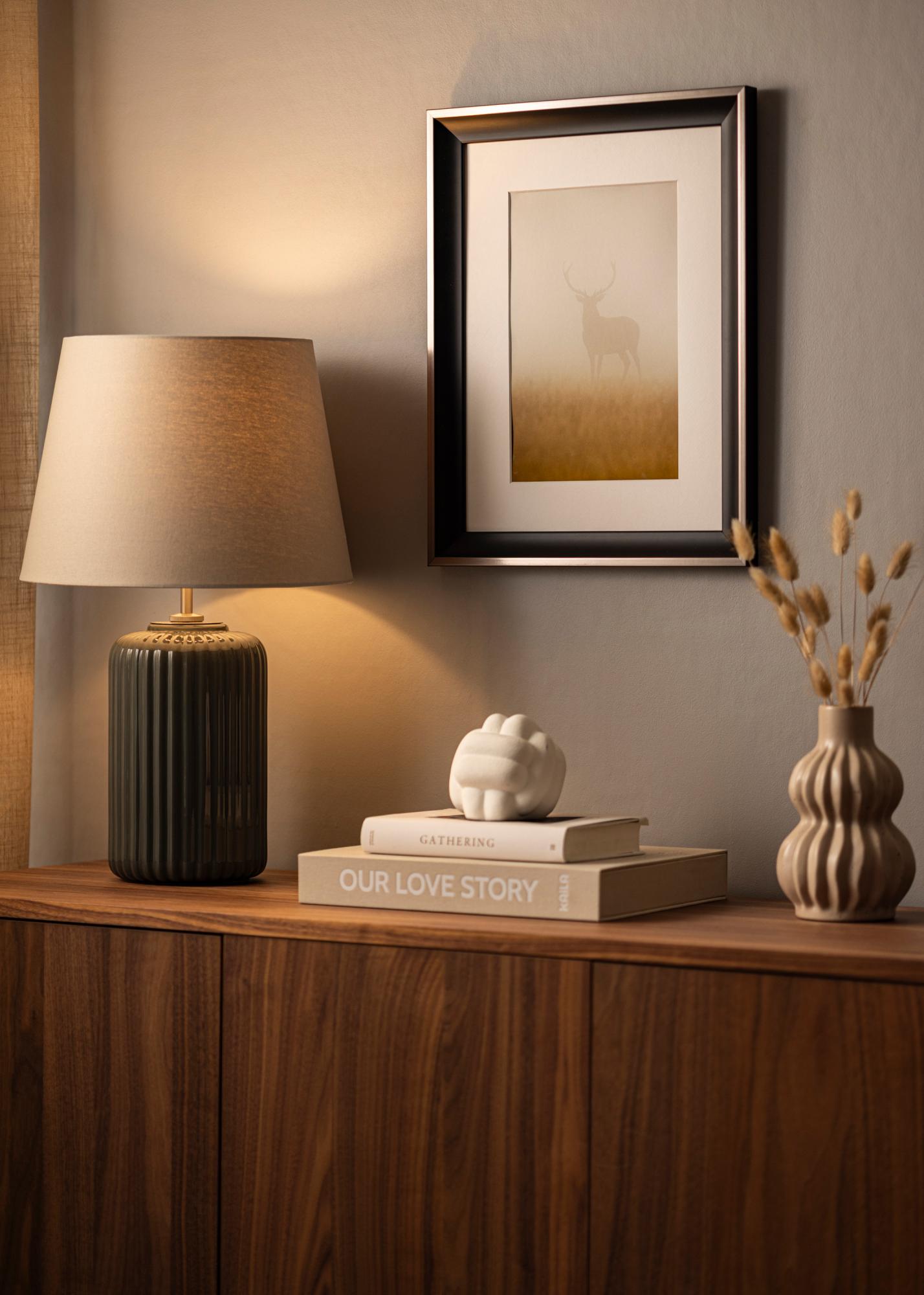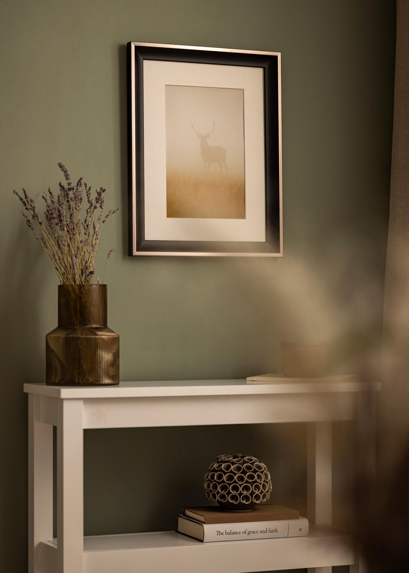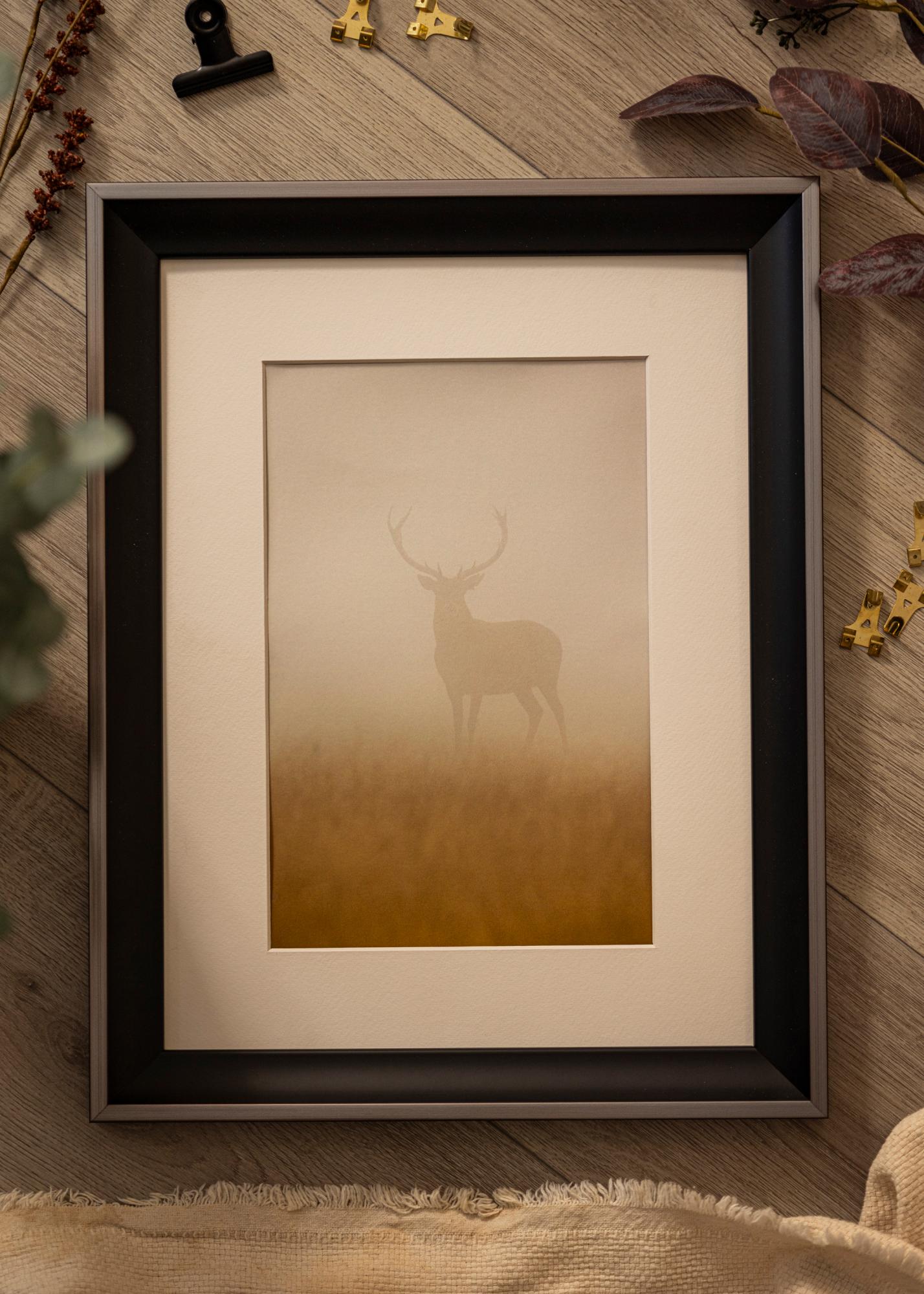 Für jeden, der auf der Suche nach einem breiten Bilderrahmen (34 mm) ist, ist Öjaren eine ausgezeichnete Wahl. Mit seinem gewölbten Profil in Schwarz, kombiniert mit einer dünnen silbernen Außenkante, vermittelt der Bilderrahmen einen exklusiven Eindruck, der garantiert gesehen wird und auffällt.