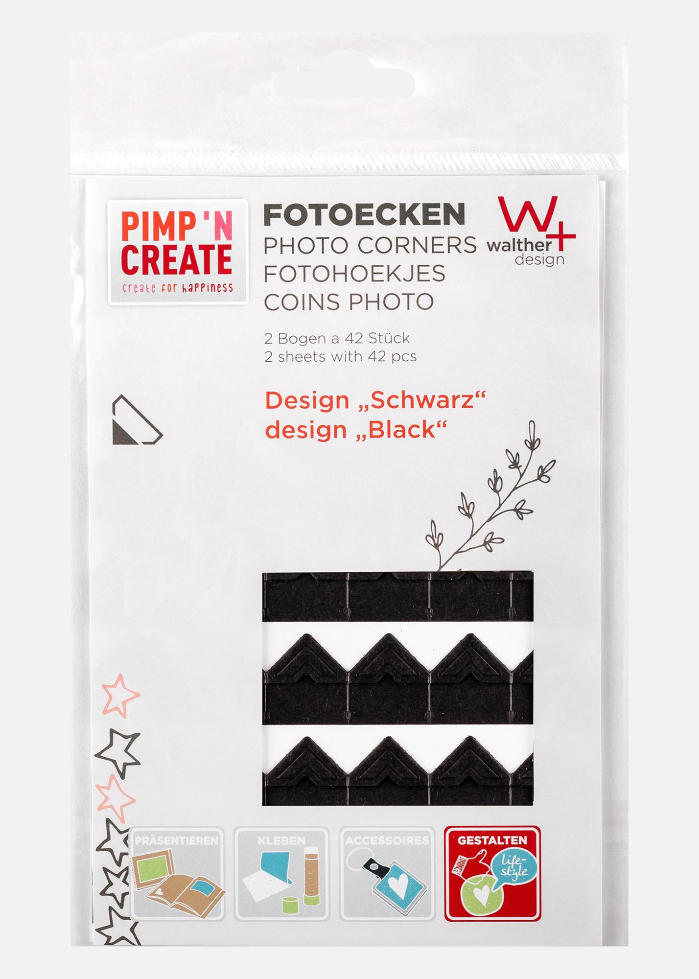 PAC Fotoecken Schwarz ist ein Set mit 84 selbstklebenden Ecken, die es einfach machen, Fotos in Alben zu montieren, ohne Klebstoff zu verwenden. Die schwarze Farbe schafft einen stilvollen und modernen Rahmen, der Bilder auf elegante Weise hervorhebt. Perfekt für Scrapbooking und Fotoalben.