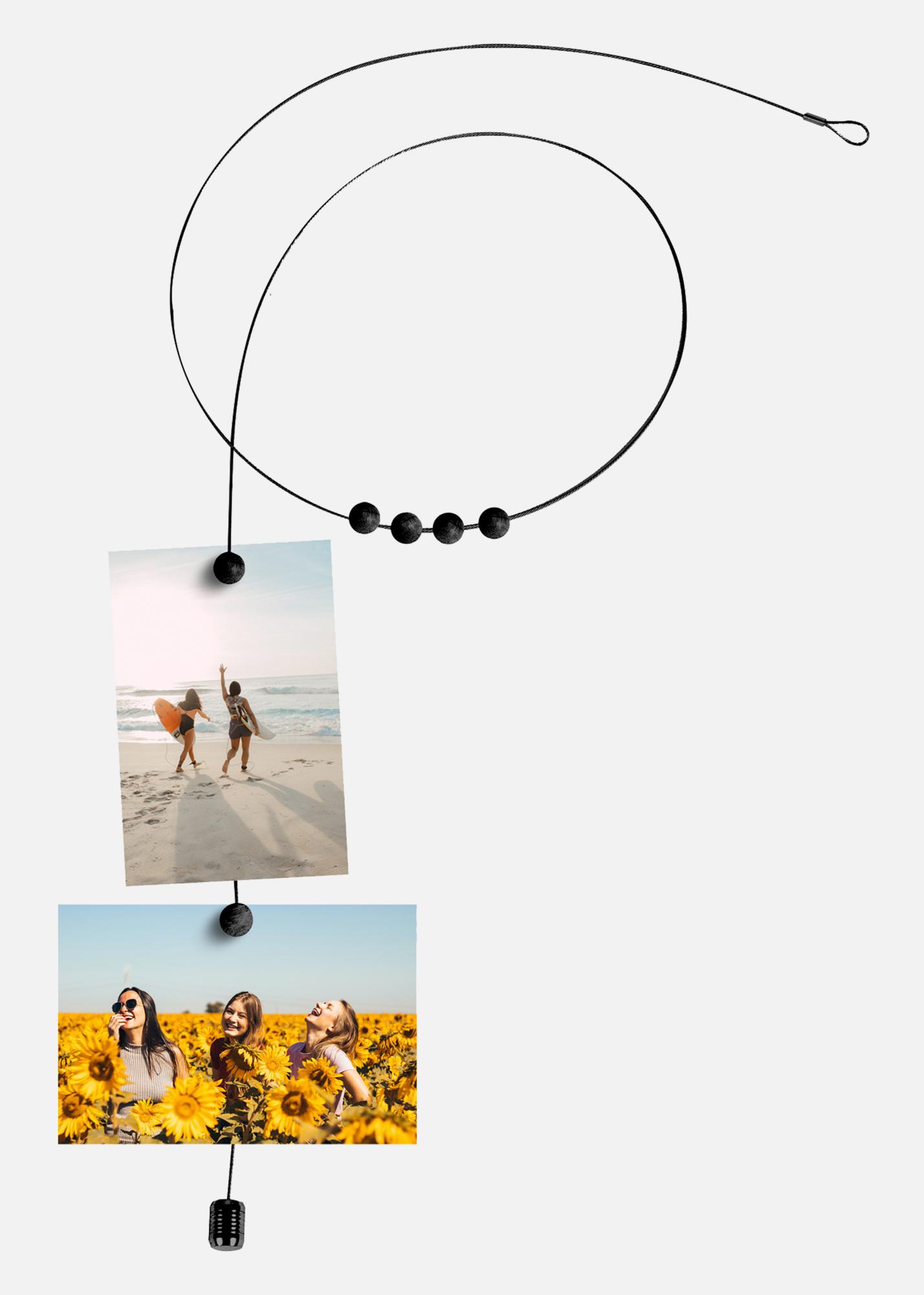 PAC Fotoseil Schwarz ist ein schickes Fotoseil mit einer Länge von 150 cm und einem modernen schwarzen Ton. Eine ausgezeichnete Wahl für diejenigen, die eine stilvolle und dezente Aufhängung von Fotos, Karten oder kleinen Dekorationen im Zuhause wünschen. Das Seil enthält starke Magnete für eine einfache Aufhängung.