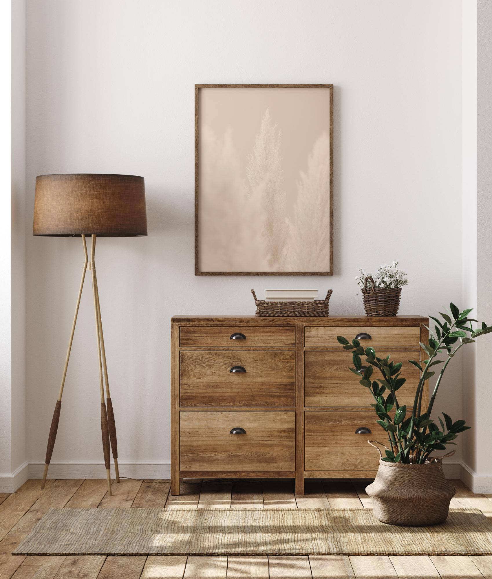 Ein engelhaftes Poster von Pampasgrasköpfen in Nahaufnahme. Verlieren Sie sich in diesem schlichten, aber eleganten Poster in den flauschigen, wolkenartigen Aufnahmen. Kombinieren Sie es mit anderen Pastellfarben für einen wahrhaft ätherischen Look in Ihrem Zuhause.
