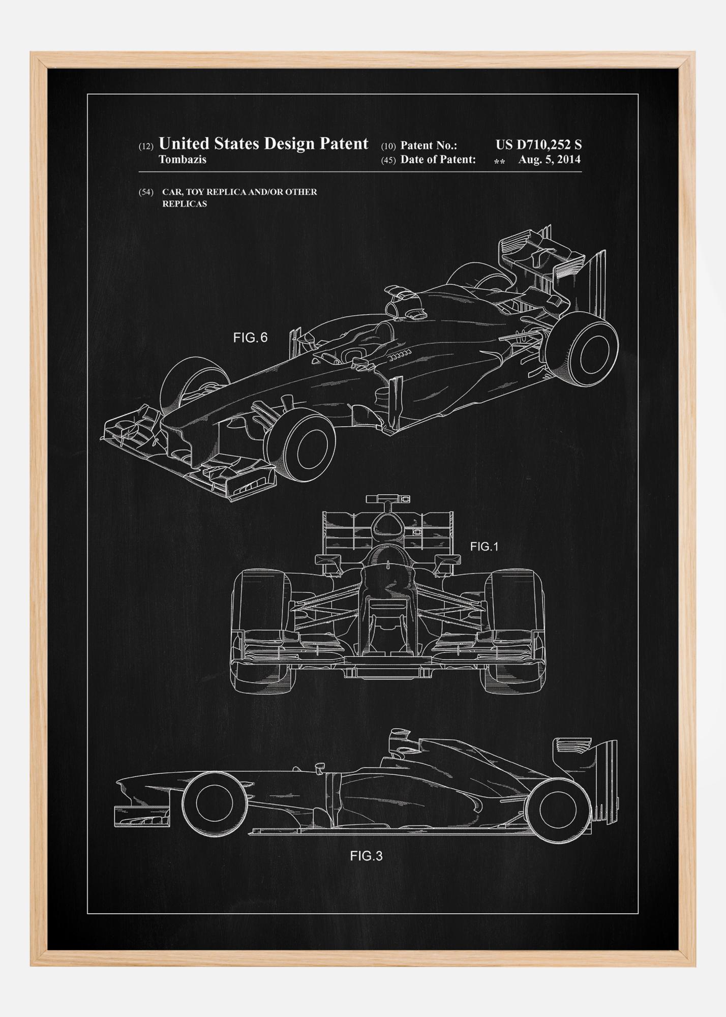 Dieses Patentposter hebt das elegante und komplexe Design eines Formel 1 Wagens hervor, gemäß US Design Patent US D710,252 S, datiert auf den 5. August 2014. Mit seinen markanten Linien und aerodynamischen Formen wird das Design des Wagens aus mehreren Perspektiven erfasst, was ein umfassendes Bild seines ikonischen und technisch fortschrittlichen Charakters vermittelt. Dieses Design ist grundlegend für die hohe Leistung und Geschwindigkeit, die mit dem Formelrennsport verbunden sind.