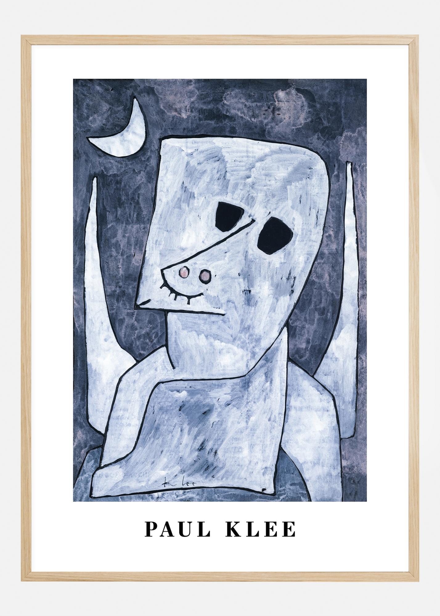 Klees bekanntes Interesse am Übernatürlichen und Metaphysischen tritt in diesem Poster deutlich hervor. Eine dünne Mondsichel hängt im Hintergrund, was ein Element von kosmischer Mystik hinzufügt und den Blick und die Haltung der zentralen Figur ergänzt. Dieser Druck ist nicht nur eine Hommage an Klees einzigartigen Stil, sondern bietet auch einen Gesprächsanstoß, der Neugier wecken und jeden Raum, in dem er platziert wird, vertiefen wird. Die Vielzahl der Blautöne, von himmlischem Licht bis fast Schwarz, macht dies zu einem vielseitigen und nachdenklich stimmenden Einrichtungselement.