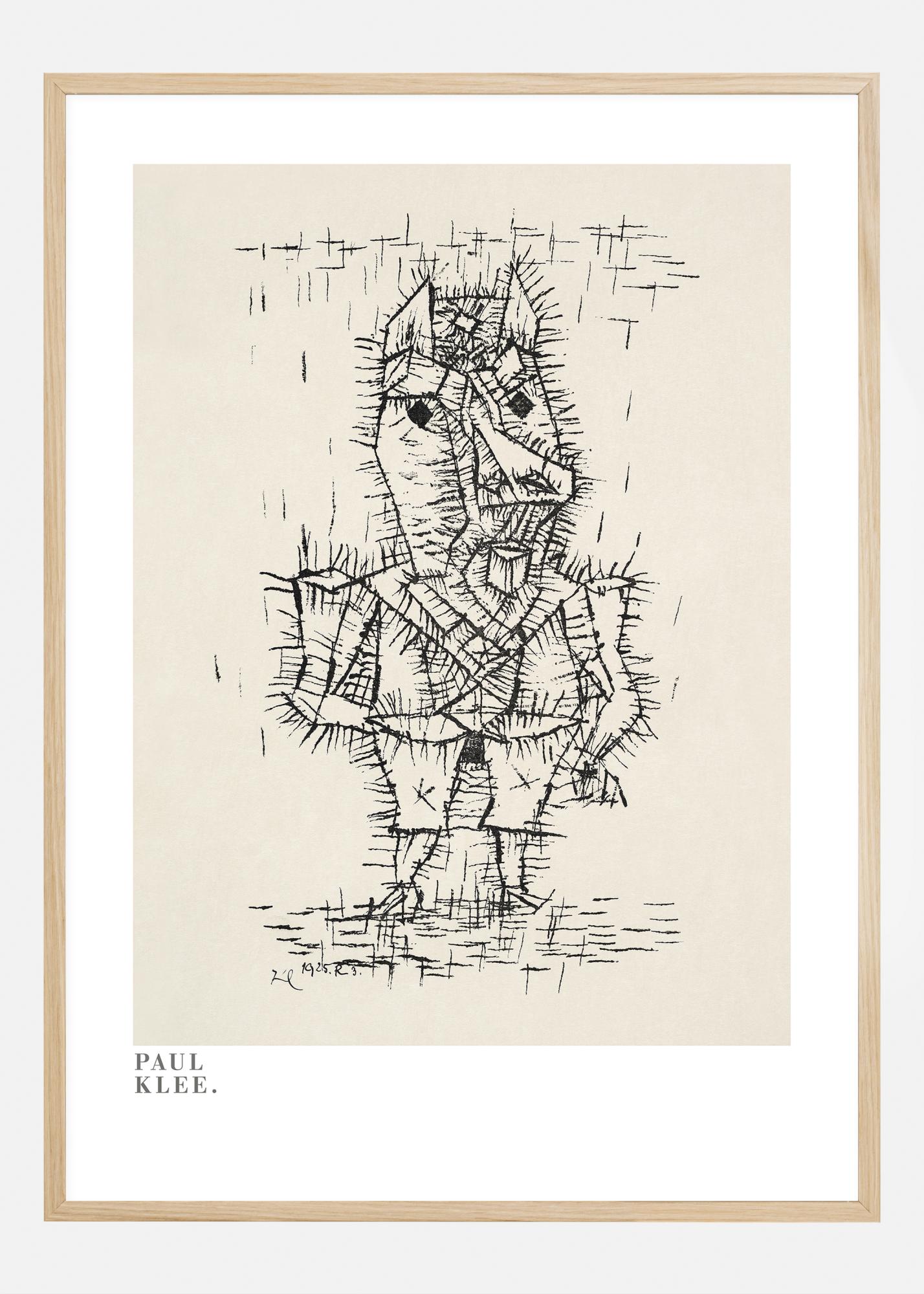 Dieses Poster zeigt eine faszinierende grafische Darstellung von Paul Klees "Ass Esel" aus dem Jahr 1925. Es stellt eine abstrakte Figur dar, die aus dynamischen Linien und Formen besteht und eine starke visuelle Wirkung erzeugt. Das Spiel des Künstlers mit Textur und Linien wird in diesem schwarz-weißen Werk lebendig, wobei der Kontrast zwischen dem mutigen Strich und dem weichen Hintergrund eine spannende Komposition schafft. Dieser Druck ist eine Reflexion von Klees Fähigkeit, einfache Konturen in ausdrucksstarke und emotional aufgeladene Bilder zu verwandeln.