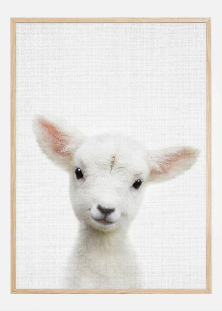 Unser entzückendes Lammposter ist ein wahrer Genuss fürs Auge, perfekt um eine weiche und einladende Atmosphäre in jedem Raum zu schaffen. Dieser bezaubernde Druck zeigt ein wolliges kleines Lamm, das mit einem Blick voller Unschuld und Neugier in die Kamera schaut. Mit seinem Fell in einem reinen Weißton und den zart rosa gefärbten Ohren bietet dieses Poster ein Gefühl von Wärme und Geborgenheit.