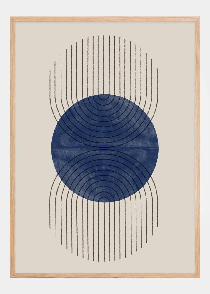 Dieses minimalistische und abstrakte Poster stellt eine tiefblaue Kreisform dar, die in einer Serie von vertikalen Linien zentriert ist und eine Illusion von Bewegung und Dimension erzeugt. Das Kunstwerk spielt mit der optischen Erfahrung von Perspektive und Tiefe durch das repetitive Muster, wodurch der blaue Kreis so wirkt, als ob er pulsiert oder vibriert. Die dezente Farbpalette besteht aus Tiefblau auf einem neutralen Hintergrund, der die klaren Linien und die schlichte Schönheit des Designs hervorhebt.