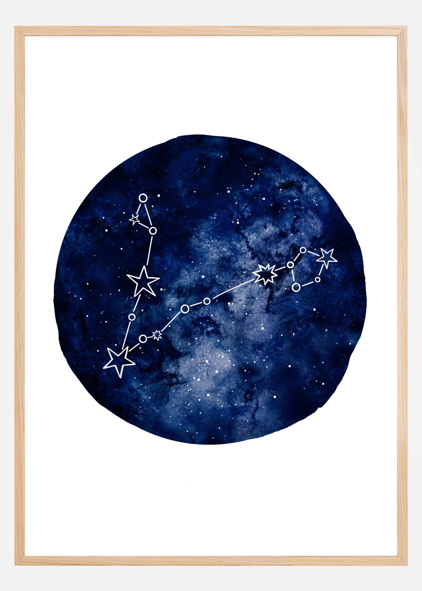 Ein beeindruckender Astrologie-Druck, der die Fische illustriert. Auf weißem Hintergrund ist die dunkelblaue Abbildung der Sternbilder mit fünf Sternen in Weiß deutlich hervorgehoben. Ein faszinierender Druck für alle, die sich für Astrologie und Astronomie interessieren. Ein perfekter Druck, um ihn in Ihrem Arbeitszimmer aufzuhängen.