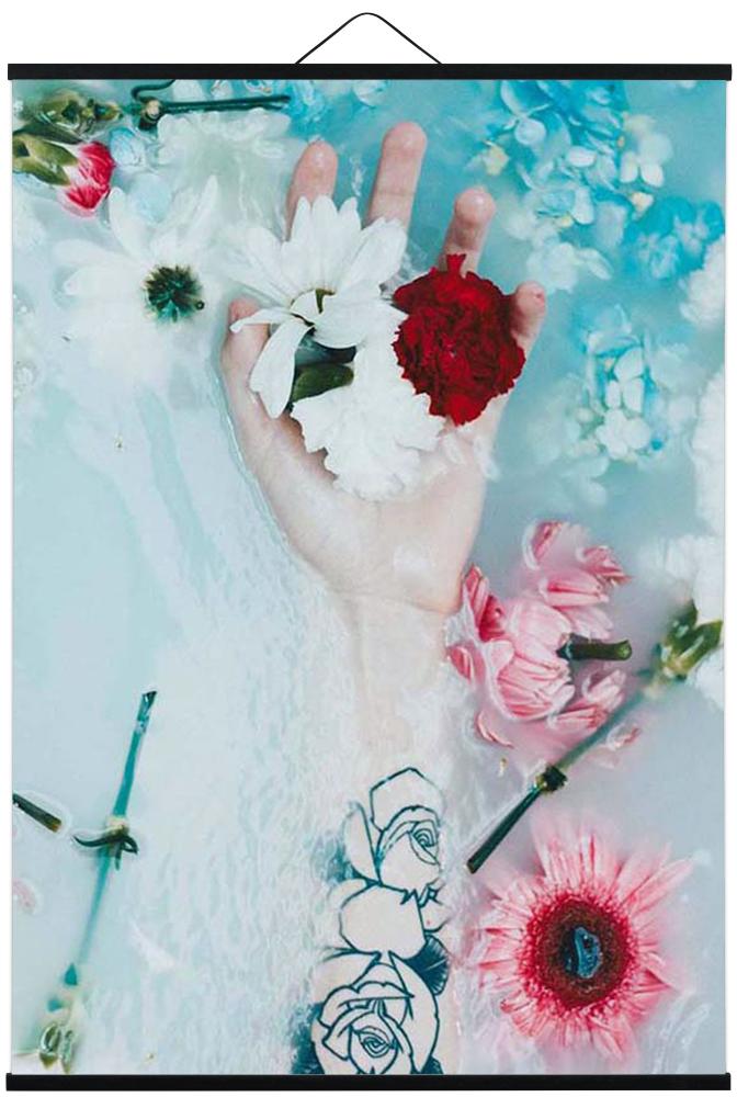 Das Poster kannst du einfach zwischen den beiden Posterleisten mit Hilfe der dazugehörenden Magneten befestigen.