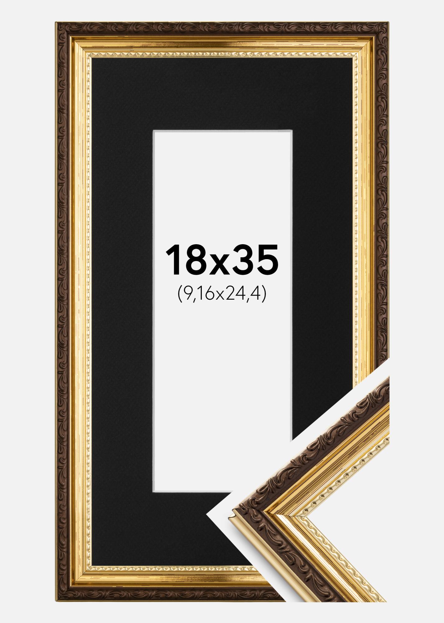 Rahmen Abisko Gold 18x35 cm - Passepartout Schwarz 4x10 inches (10,16x25,4 cm)