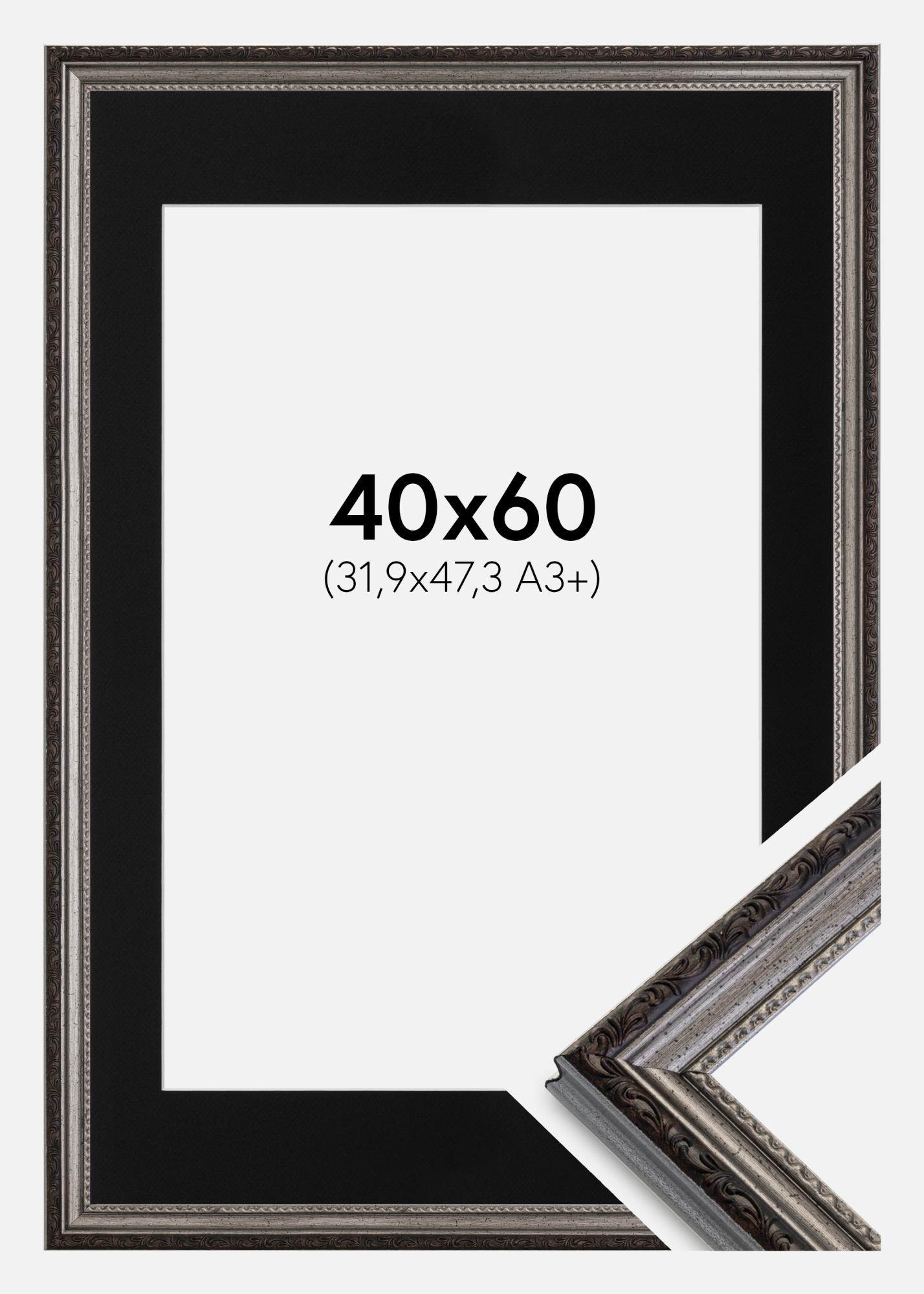 Rahmen Abisko Silber 40x60 cm - Passepartout Schwarz 32,9x48,3 cm (A3+)