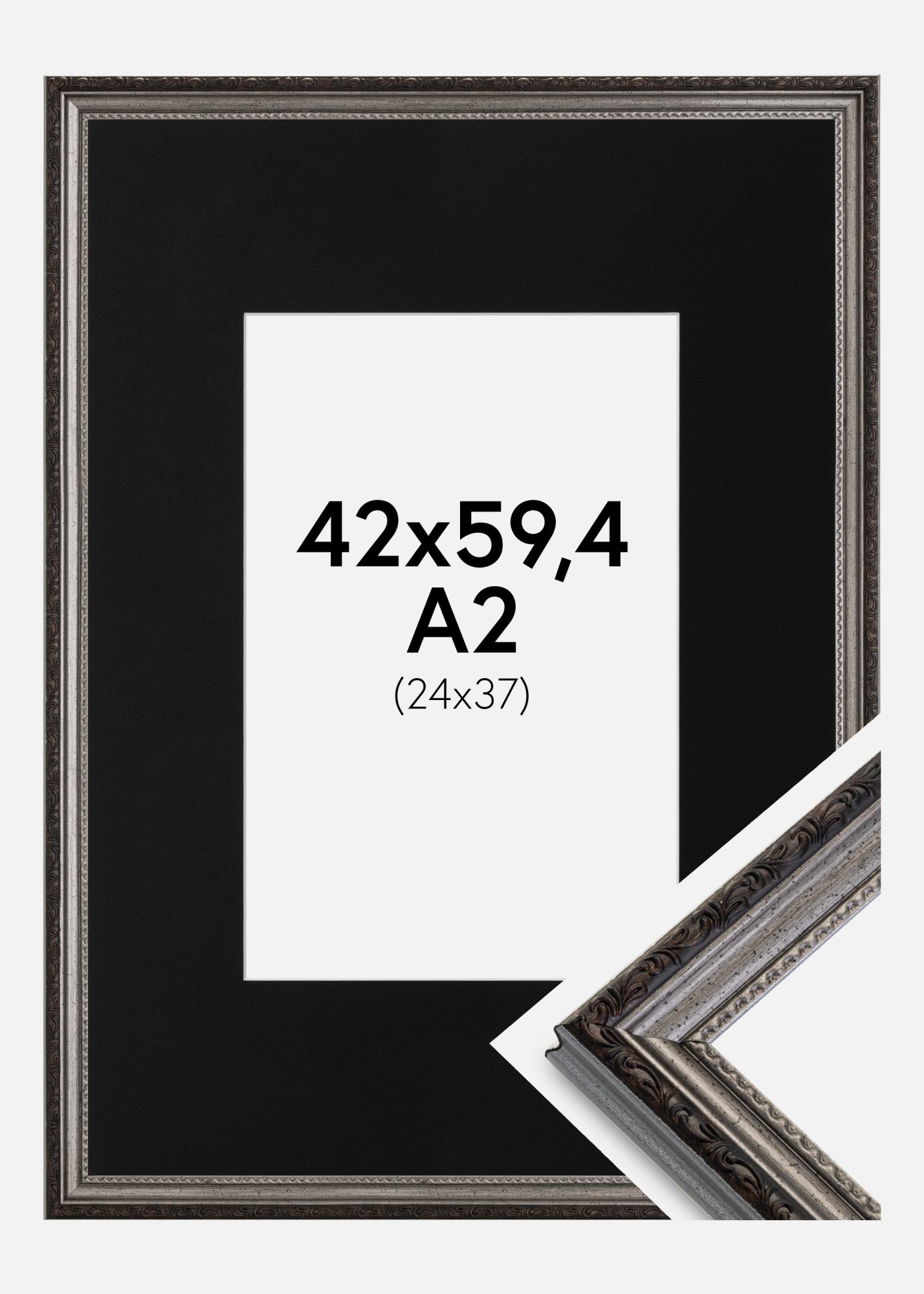 Rahmen Abisko Silber 42x59,4 cm (A2) - Passepartout Schwarz 25x38 cm