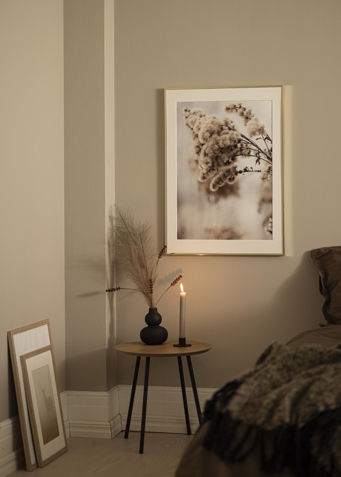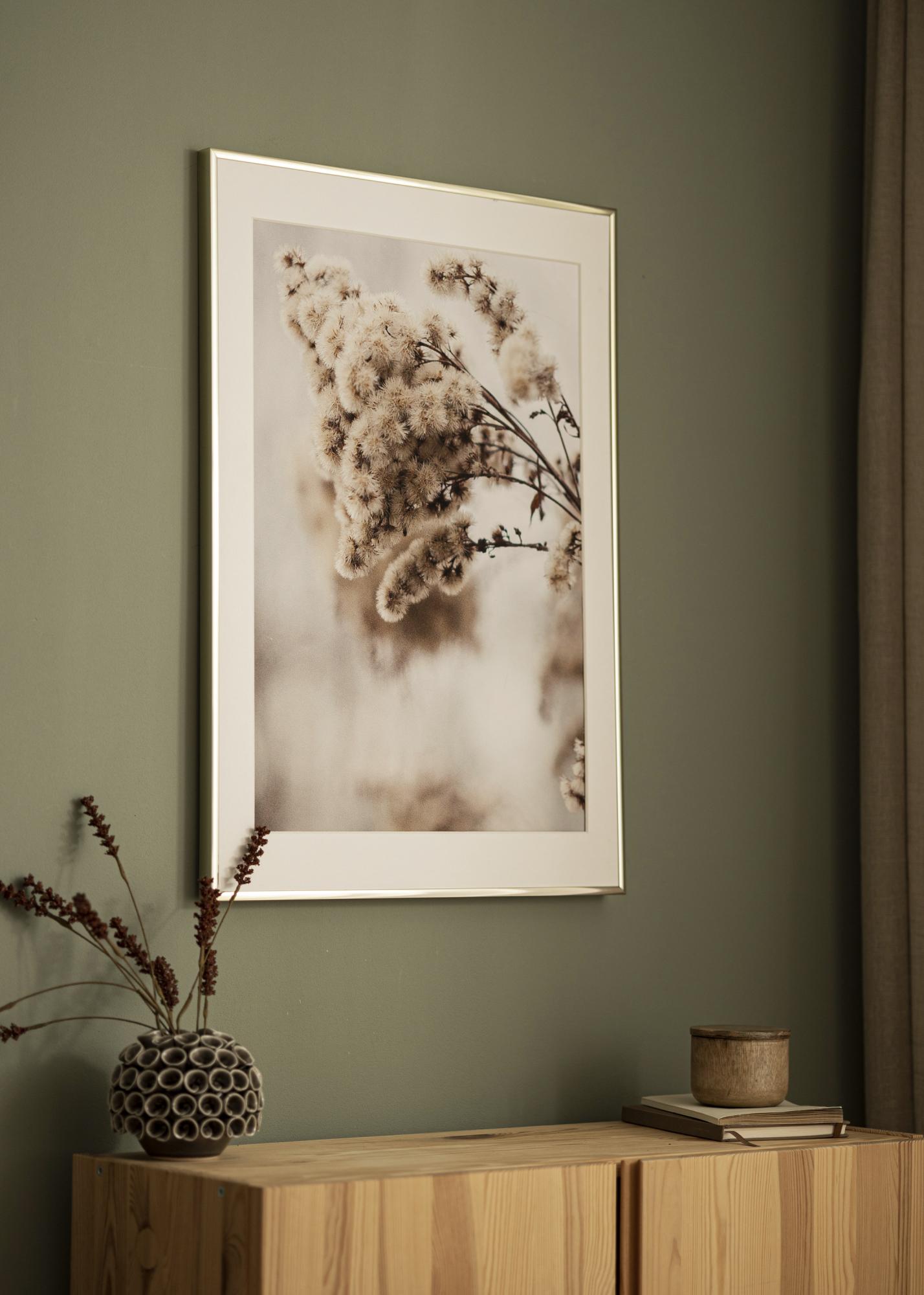 Dies ist ein dünner Aluminiumrahmen in einem stilvollen blanken Goldton. Die schmale Leiste des Rahmens, von nur 9 mm, sorgt dafür, dass der Hauptfokus auf Ihren Motiven liegen wird. Es ist perfekt, wenn Sie trendige poster oder Fotos von nahen und lieben Menschen haben, die Sie an der Wand hervorheben möchten.