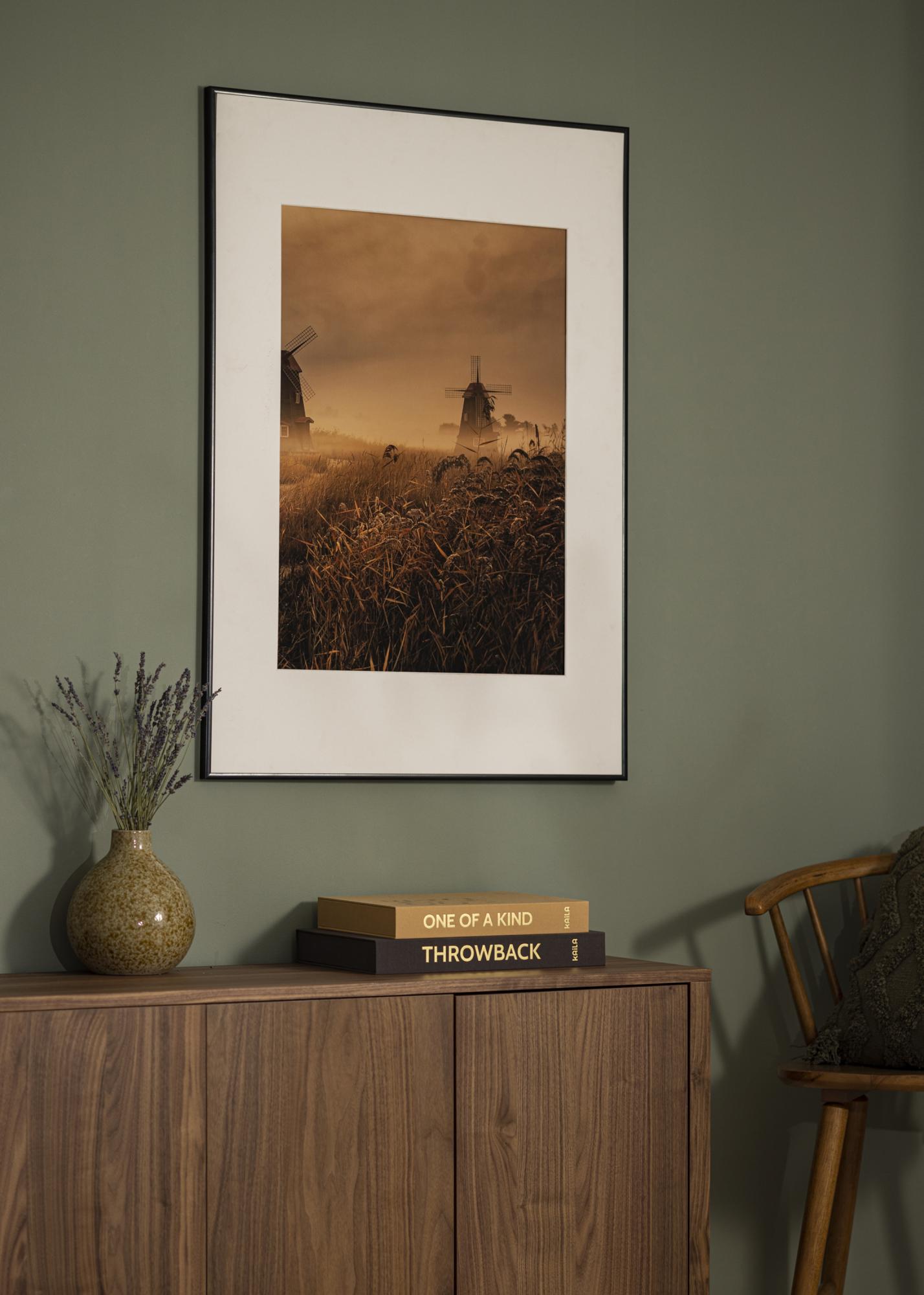 Das Acrylglas im Rahmen hat eine Schutzfolie auf beiden Seiten, die vor der Verwendung einfach entfernt wird und sicherstellt, dass Ihr Motiv frei von Kratzern oder Staub präsentiert wird. Mit einem Profil von nur 9 mm wird der Rahmen zu einem diskreten, aber dennoch präsenten Detail an Ihrer Wand.