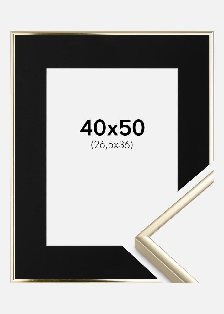 Rahmen Aluminium Gold glänzend 40x50 cm - Passepartout Schwarz 27,5x37 cm