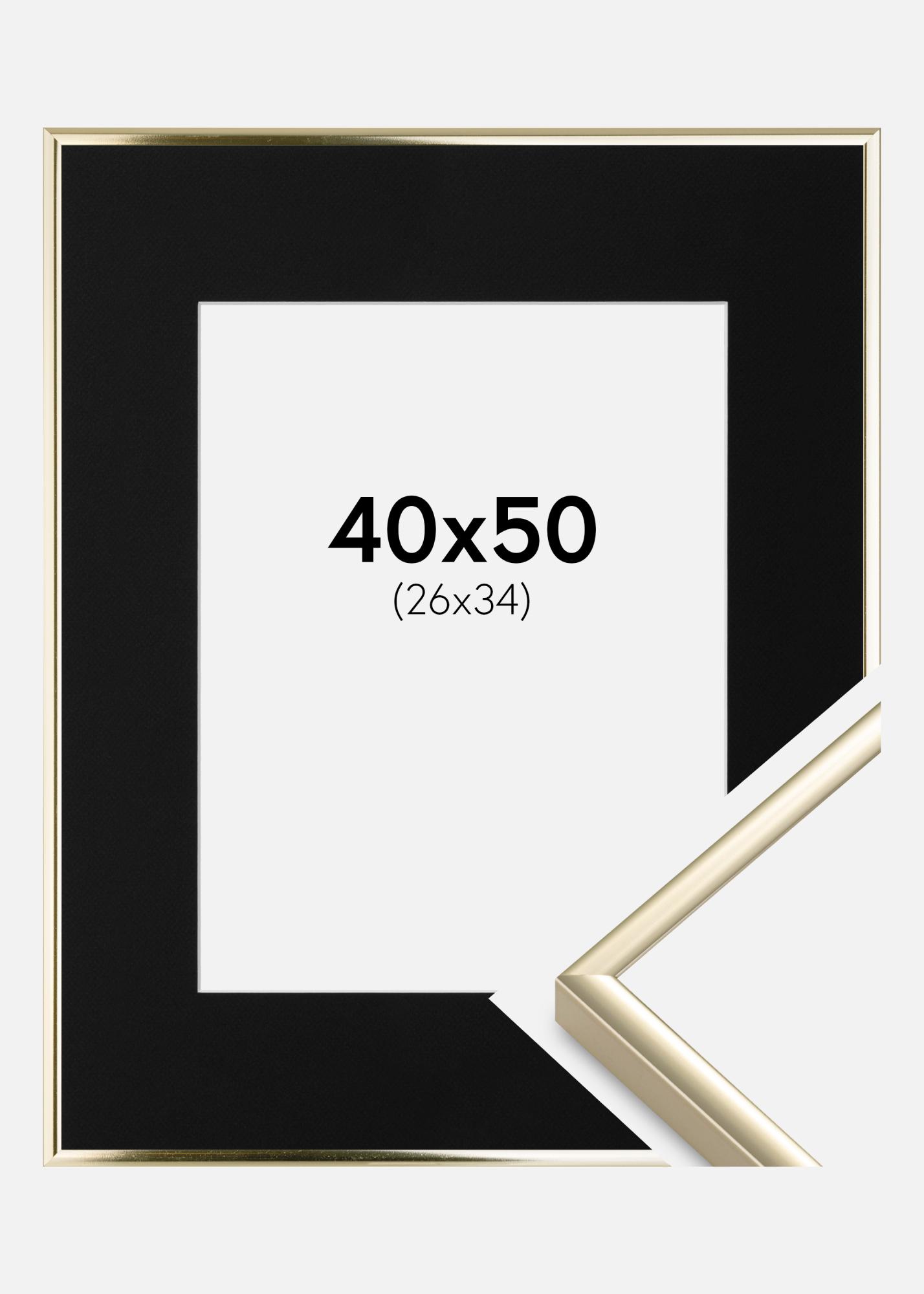Rahmen Aluminium Gold glänzend 40x50 cm - Passepartout Schwarz 27x35 cm
