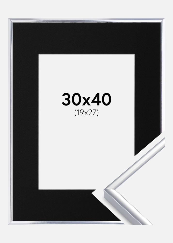 Rahmen Aluminium Silber glänzend 30x40 cm - Passepartout Schwarz 20x28 cm