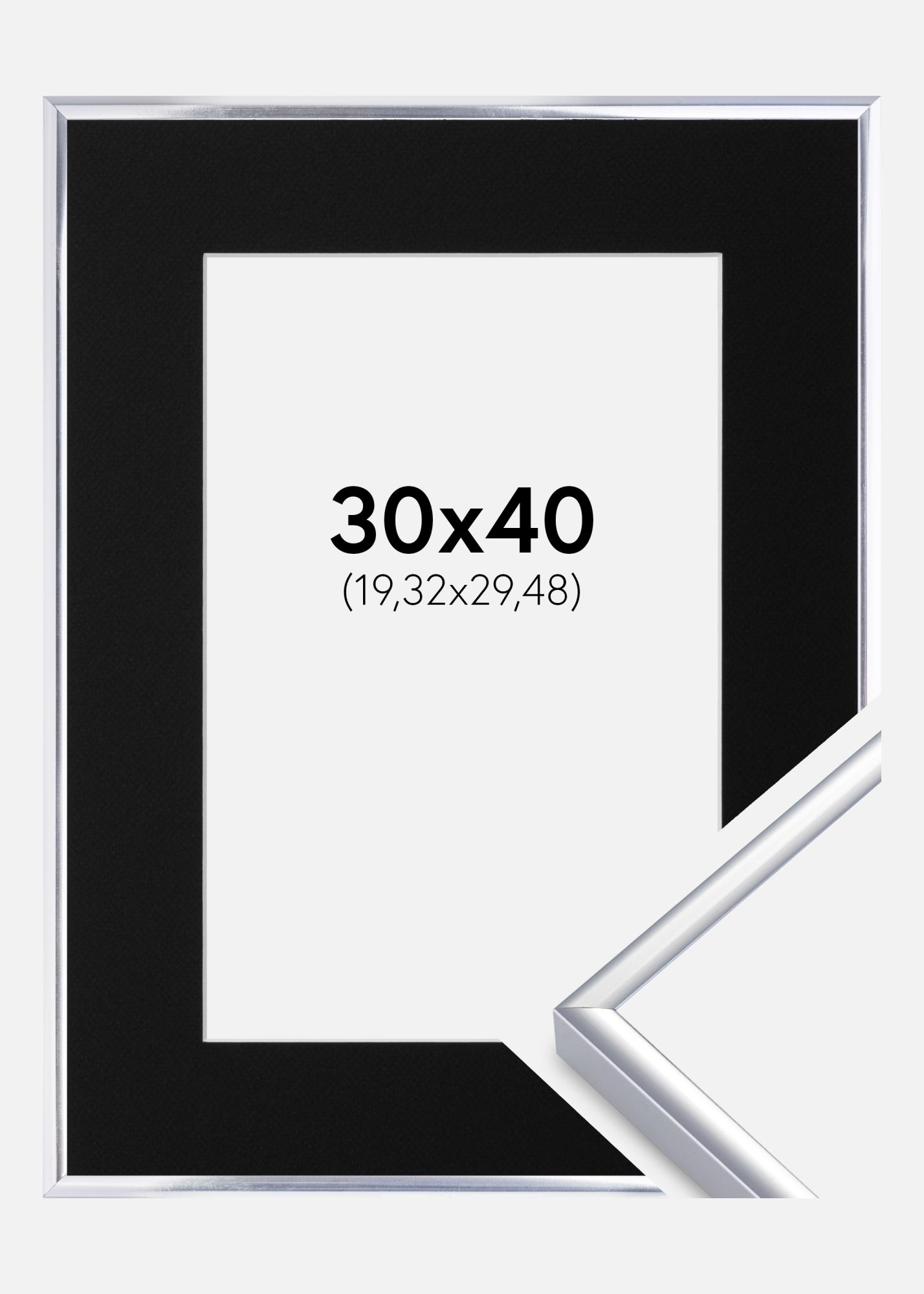 Rahmen Aluminium Silber glänzend 30x40 cm - Passepartout Schwarz 8x12 inches