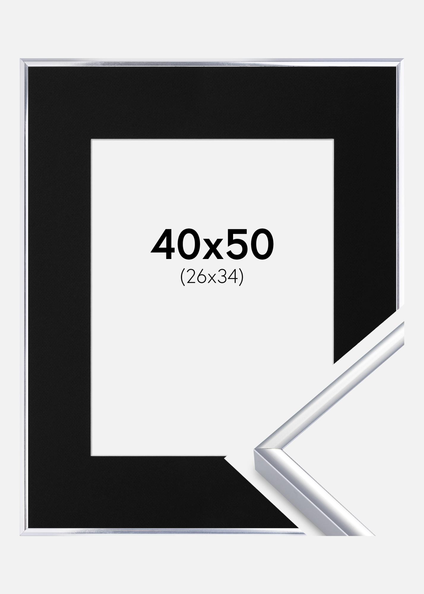 Rahmen Aluminium Silber glänzend 40x50 cm - Passepartout Schwarz 27x35 cm