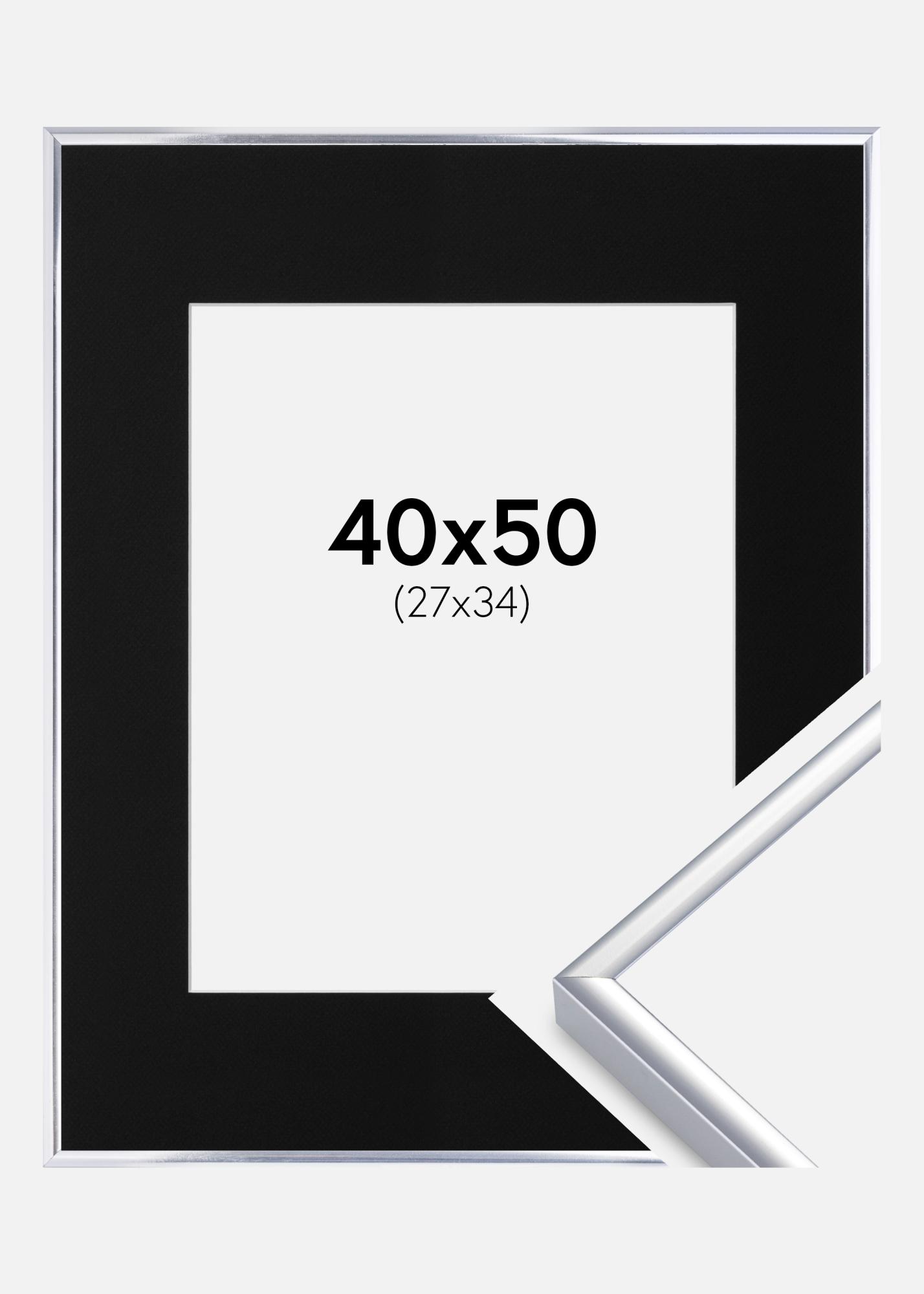 Rahmen Aluminium Silber glänzend 40x50 cm - Passepartout Schwarz 28x35 cm