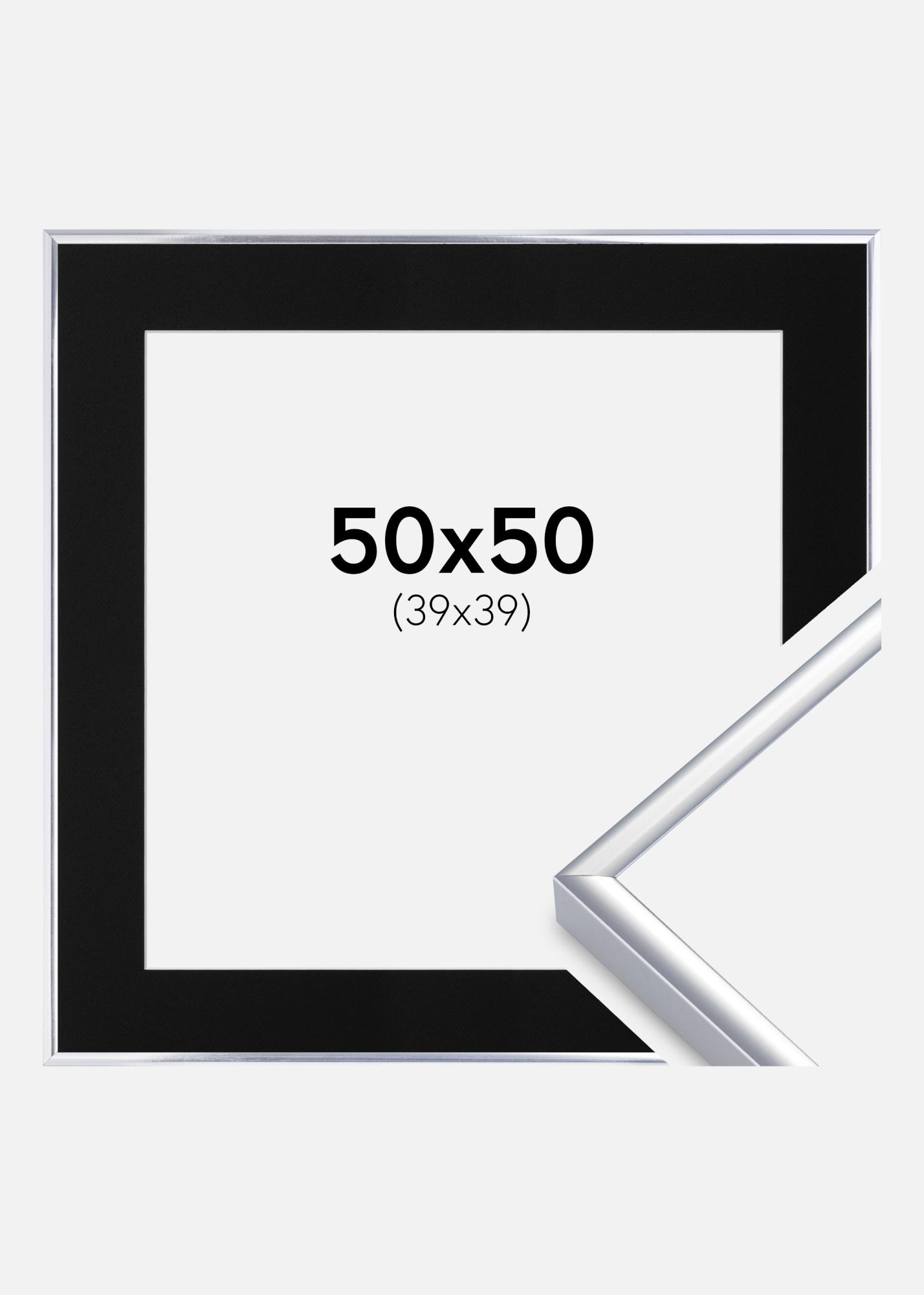 Rahmen Aluminium Silber glänzend 50x50 cm - Passepartout Schwarz 40x40 cm