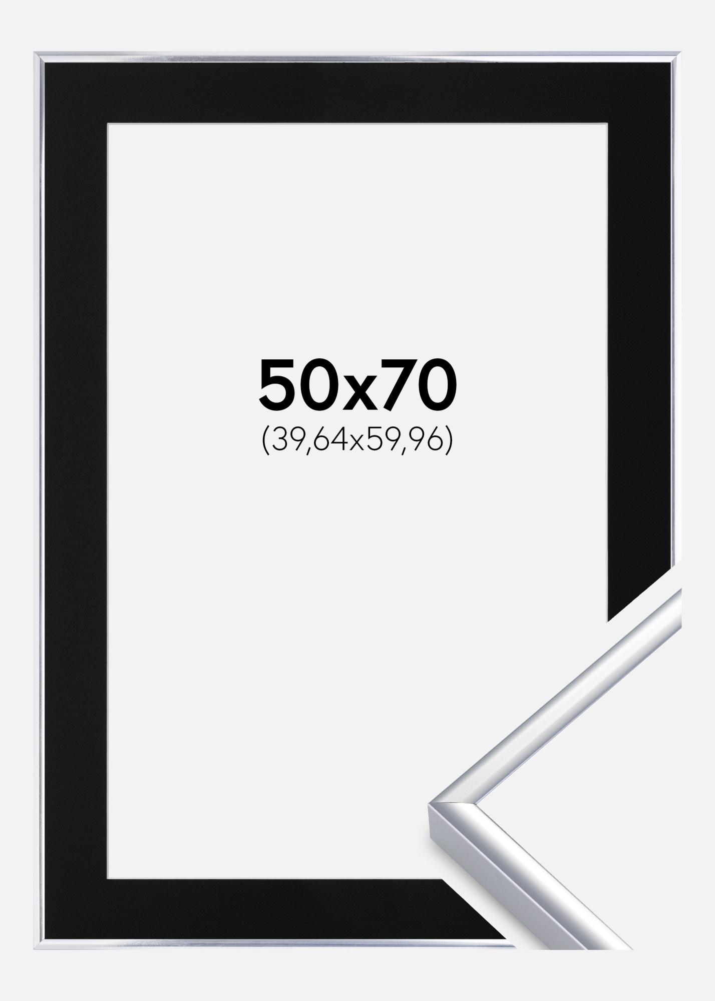 Rahmen Aluminium Silber glänzend 50x70 cm - Passepartout Schwarz 16x24 inches