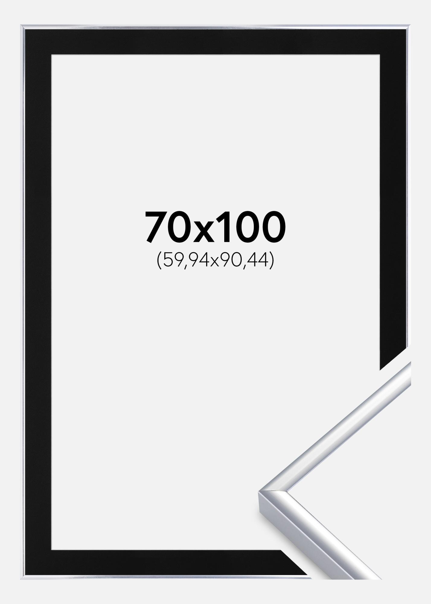 Rahmen Aluminium Silber glänzend 70x100 cm - Passepartout Schwarz 24x36 inches