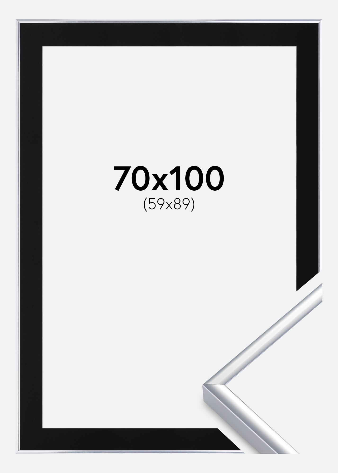 Rahmen Aluminium Silber glänzend 70x100 cm - Passepartout Schwarz 60x90 cm