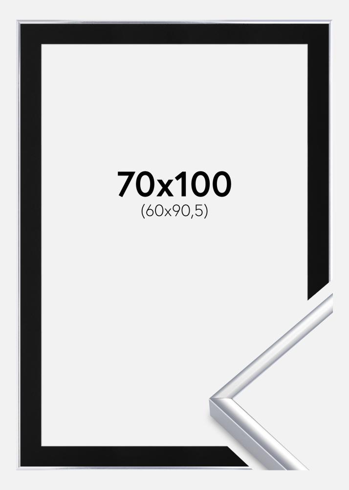 Rahmen Aluminium Silber glänzend 70x100 cm - Passepartout Schwarz 61x91,5 cm