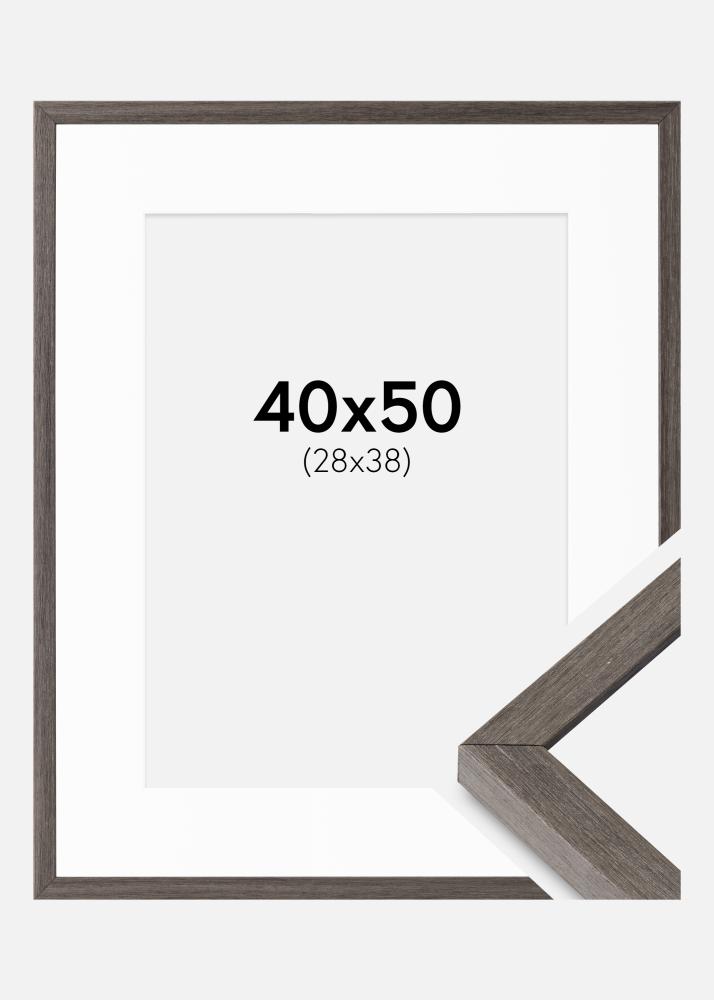 Rahmen Ares grau Eiche 40x50 cm - Passepartout Weiß 29x39 cm
