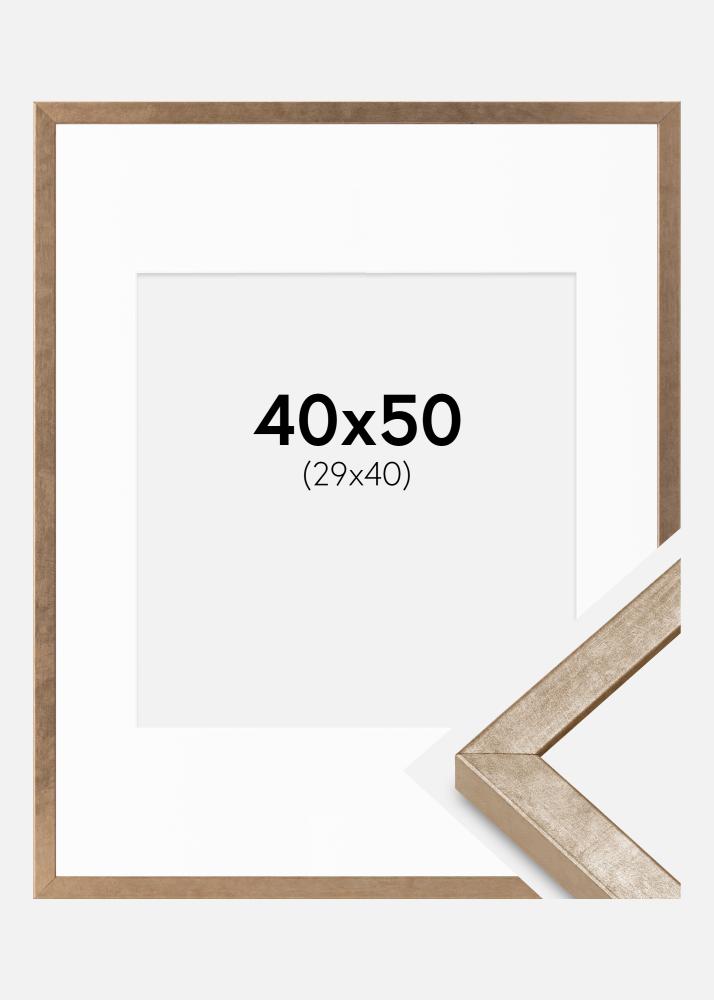 Rahmen Ares Messing 40x50 cm - Passepartout Weiß 30x41 cm