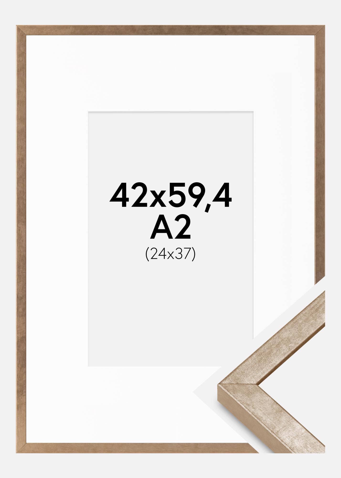 Rahmen Ares Messing 42x59,4 cm - Passepartout Weiß 25x38 cm