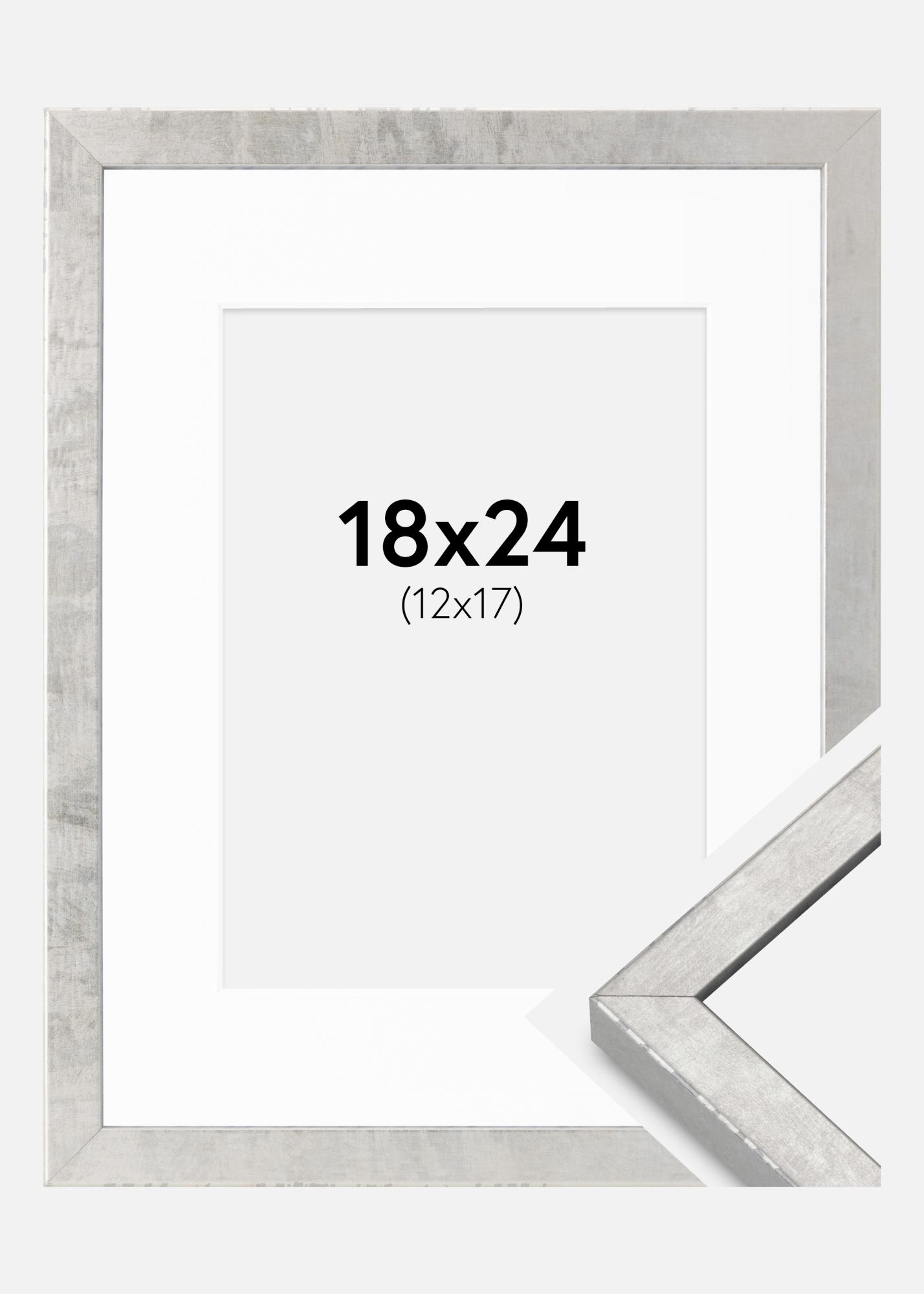 Rahmen Ares Silber 18x24 cm - Passepartout Weiß 13x18 cm