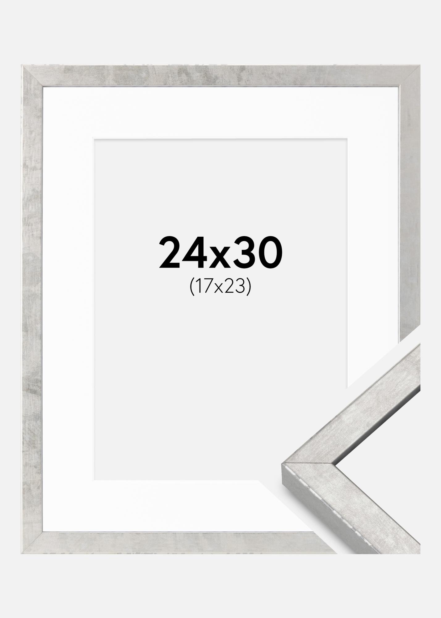 Rahmen Ares Silber 24x30 cm - Passepartout Weiß 18x24 cm