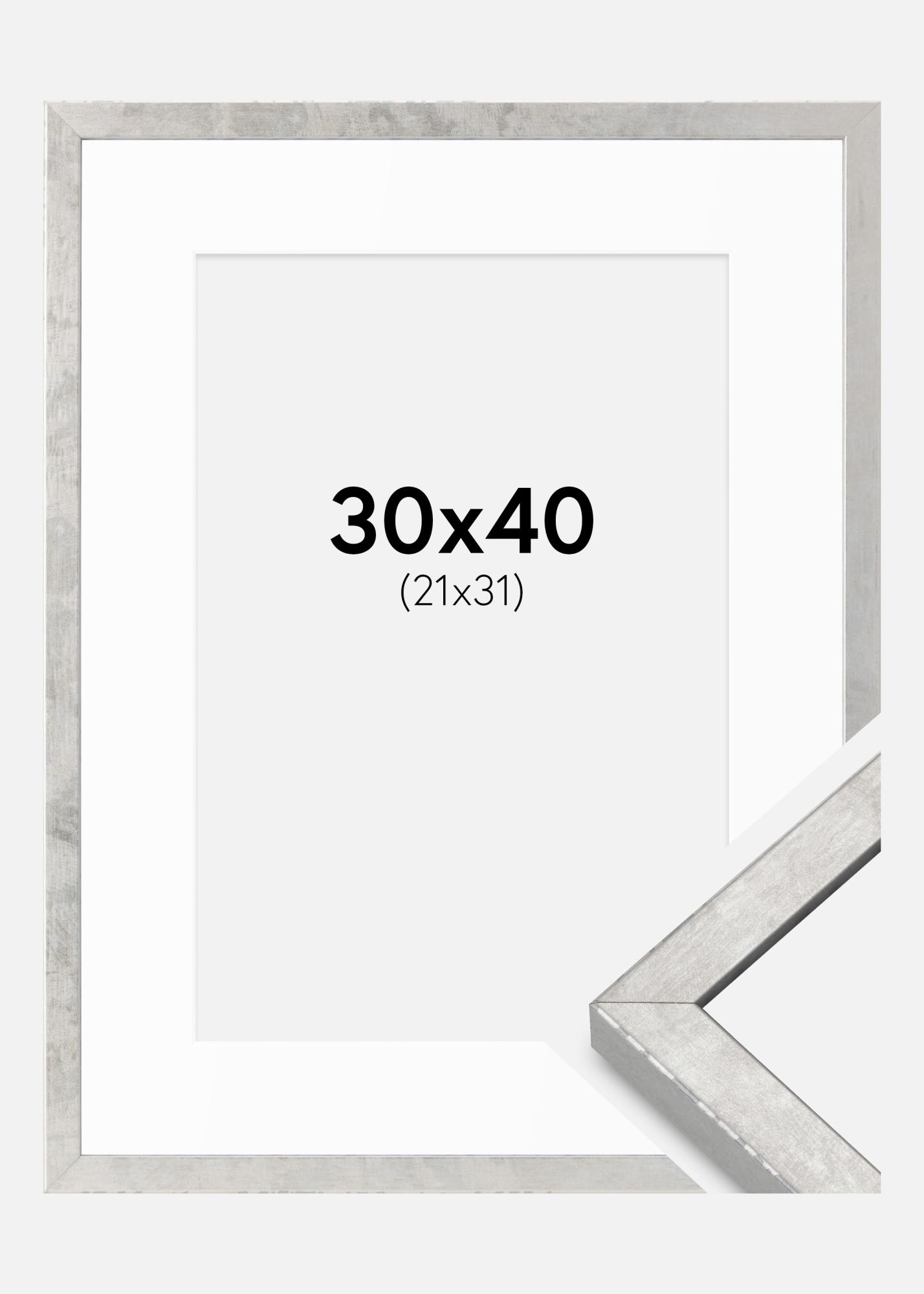 Rahmen Ares Silber 30x40 cm - Passepartout Weiß 22x32 cm