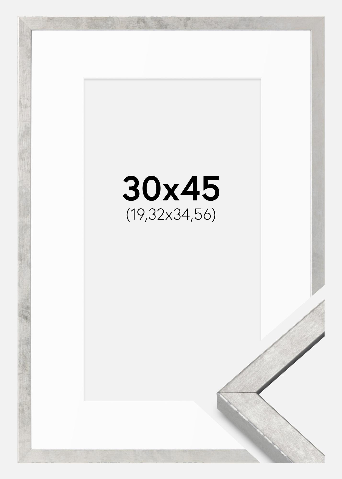 Rahmen Ares Silber 30x45 cm - Passepartout Weiß 8x14 inches