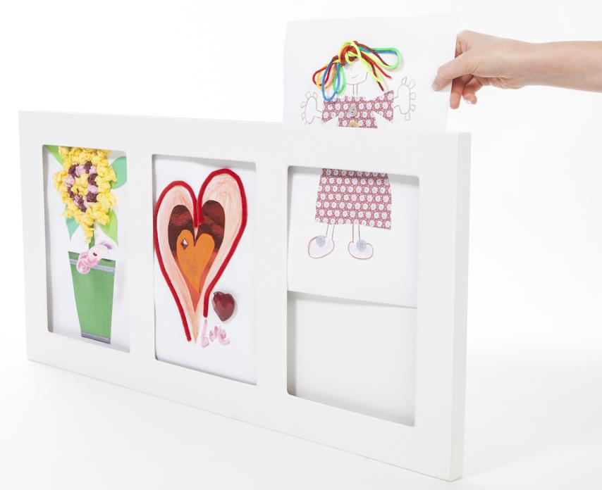 Bilderrahmen für selbstgemalte Kinderbilder sind immer ein schönes persönliches Geschenk, das in Familie und im Freundeskreis Freude bringt. Auch die kleinen Künstler werden es sicherlich toll finden, ihre eigenen Werke in angemessenen Bilderrahmen an der Wand aufhängen zu können und damit die Wände im eigenen Kinderzimmer zu schmücken. Dieser hübsche Bilderrahmen passt zu jedem Wohnstil und kann überall Einsatz finden. Da der Bilderrahmen ohne Glas auskommt, können nicht nur Bilder, sondern auch andere kleine 3D-Kunstwerke stilvoll eingerahmt werden. Warum nicht ein hübsches Bild mit kleinen Papierteilchen, Perlen oder sonstigen Bastelmaterialien verschönern und ein einzigartiges Kunstwerk schaffen? Raum für Fantasie und für schöne, persönliche Wanddekoration!