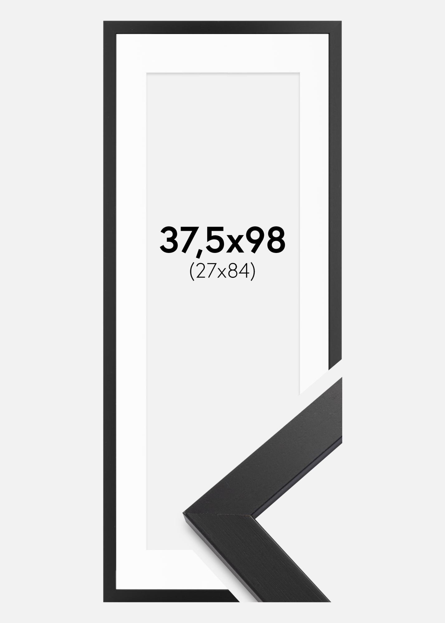 Rahmen Schwarz Holz 37,5x98 cm - Passepartout Weiß 28x85 cm