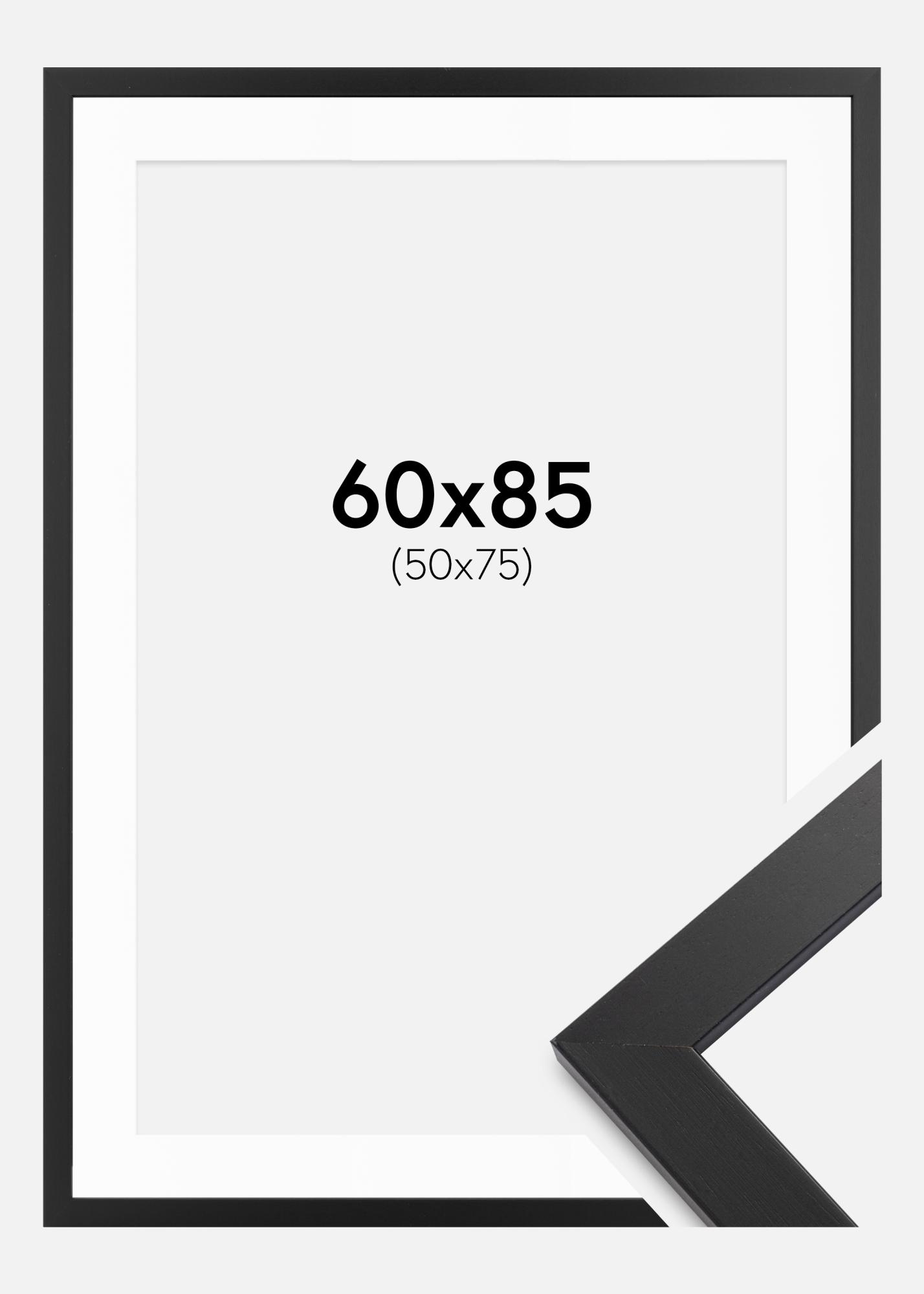 Rahmen Schwarz Holz 60x85 cm - Passepartout Weiß 51x76 cm
