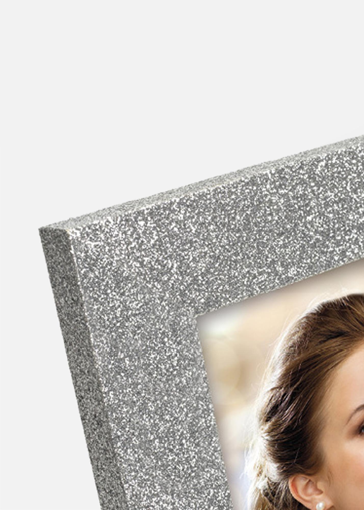 Dieser Bilderrahmen ist nicht nur eine stilvolle Umrahmung für Ihre Bilder, sondern auch ein dekoratives Detail an sich. Die glitzernde Oberfläche fängt das Licht ein und sorgt für einen lebendigen Effekt, der den Rahmen an der Wand hervorstechen lässt. Egal, ob Sie ihn im Wohnzimmer oder Schlafzimmer aufhängen, er wird eine glamouröse Atmosphäre schaffen.