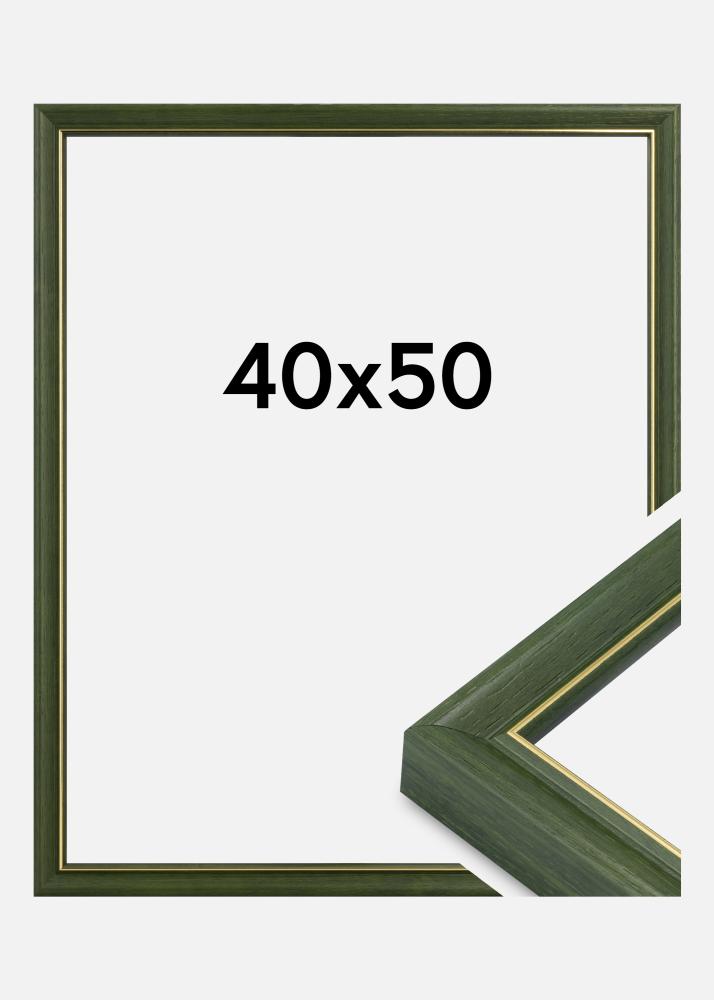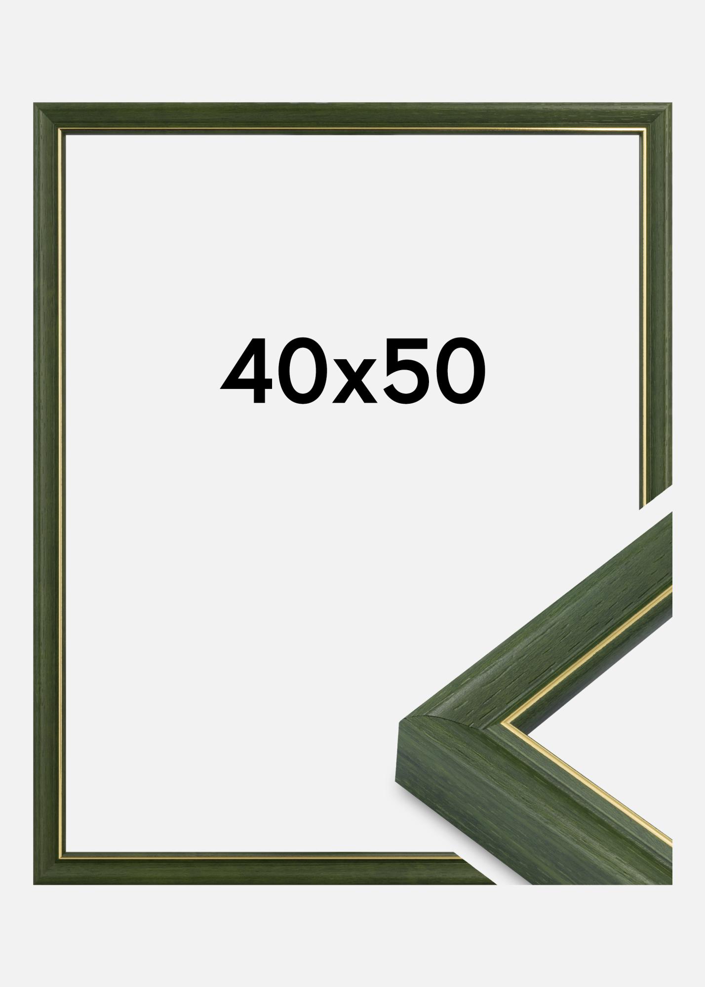 Der Rahmen besteht aus Kompositmaterial und hat eine Rahmenleiste, die 23 mm breit und 27 mm tief ist. Die grüne Farbe zusammen mit dem natürlichen Charakter macht diesen Rahmen zu einem dekorativen Element in skandinavischen, ländlichen und auch traditionelleren Wohnstilen. Der Rahmen passt perfekt für Motive im Format 40 x 50 cm.