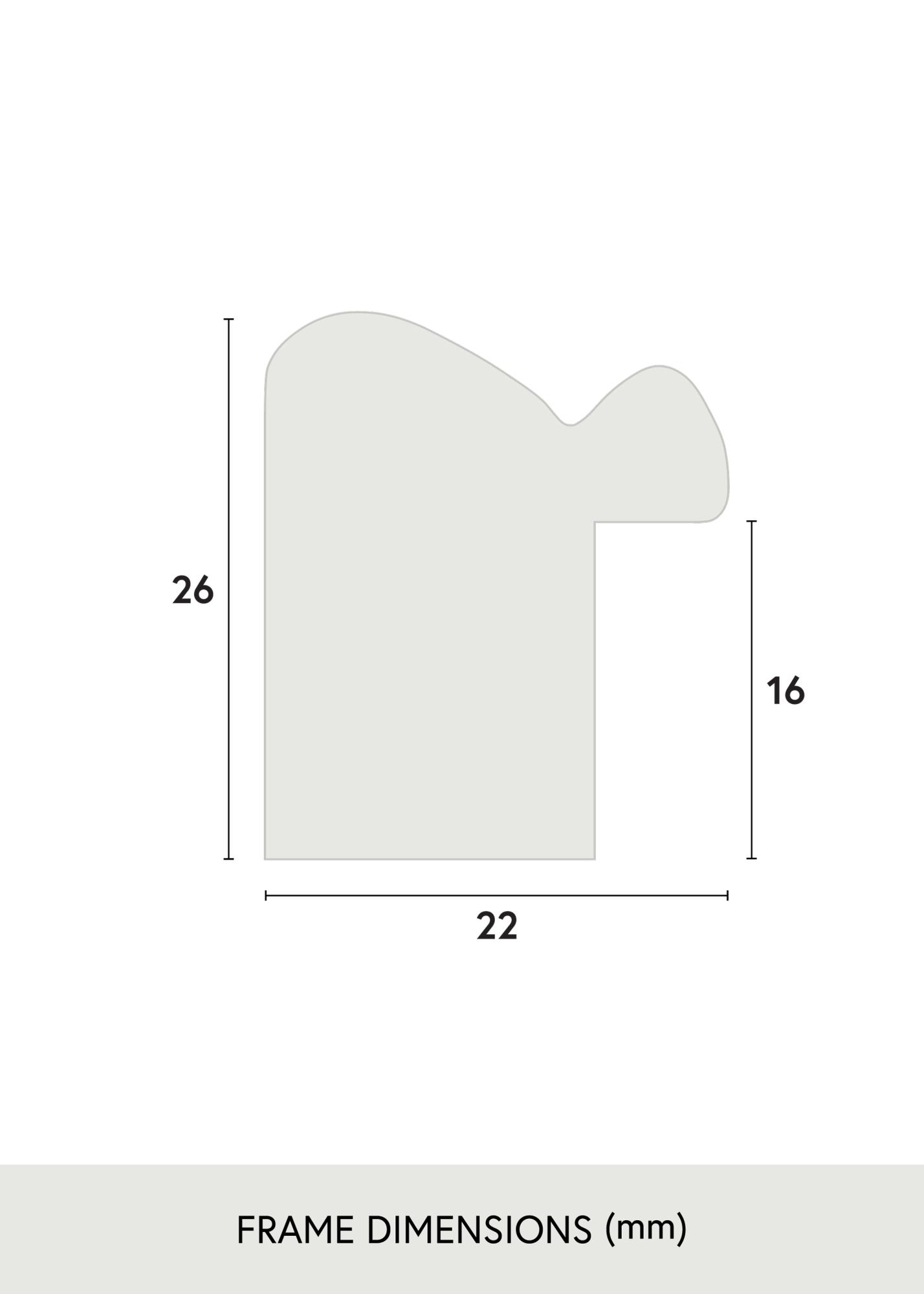 Der Rahmen besteht aus Kompositmaterial und hat eine Tiefe von 27 mm. So fühlt er sich robust an und bleibt dennoch elegant. Die präzisen Ecken und das gleichmäßige Finish schaffen eine harmonische, gemütliche Atmosphäre – passend für skandinavische, ländliche oder traditionell eingerichtete Räume.